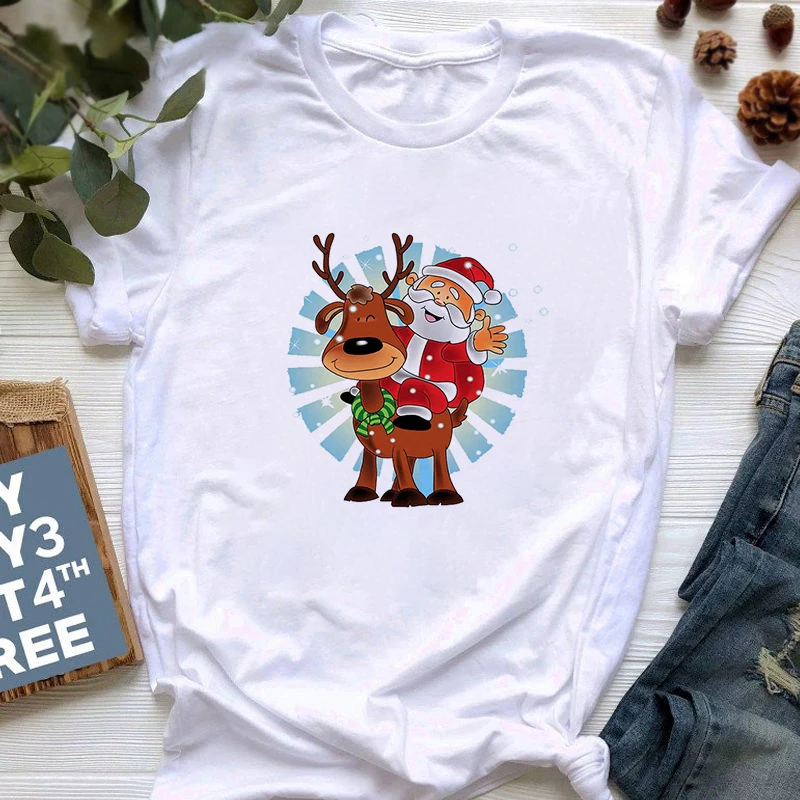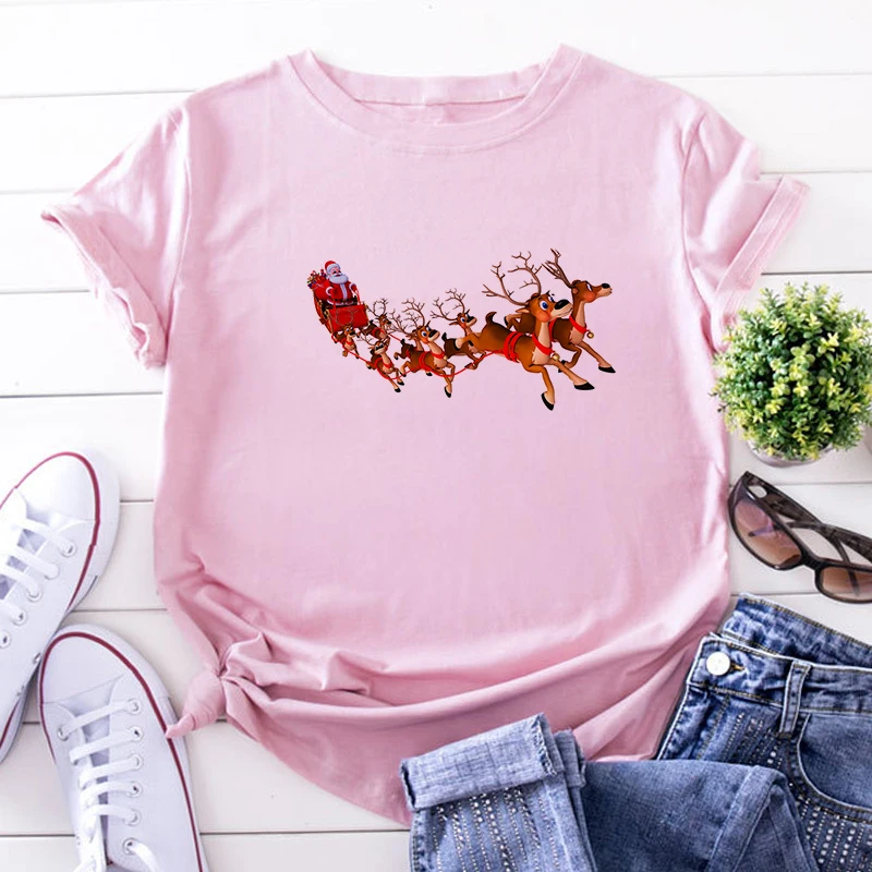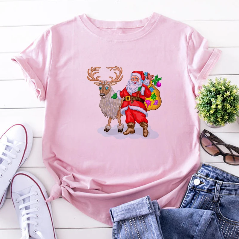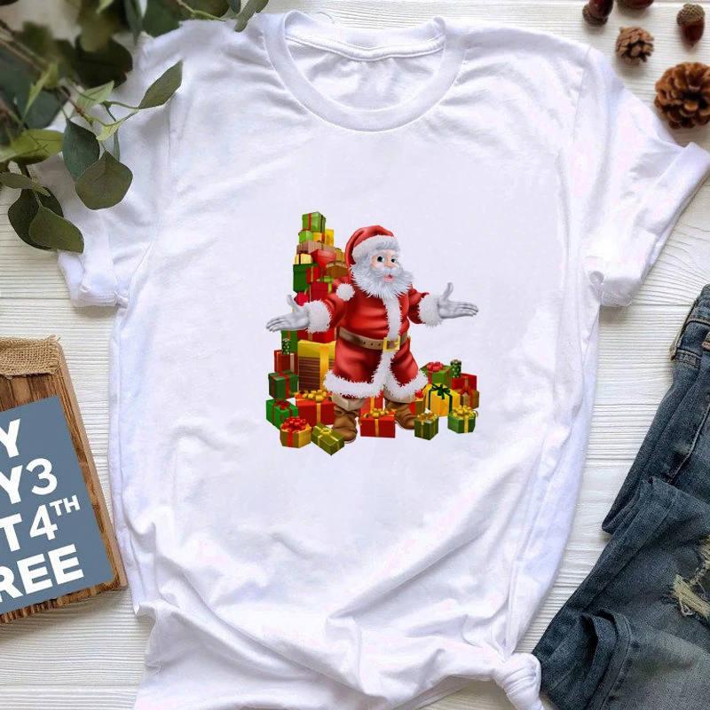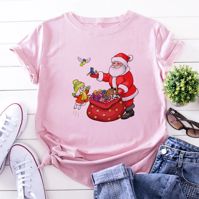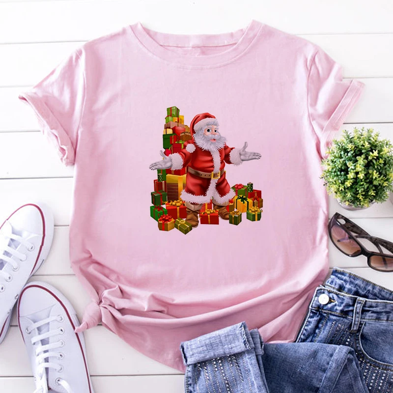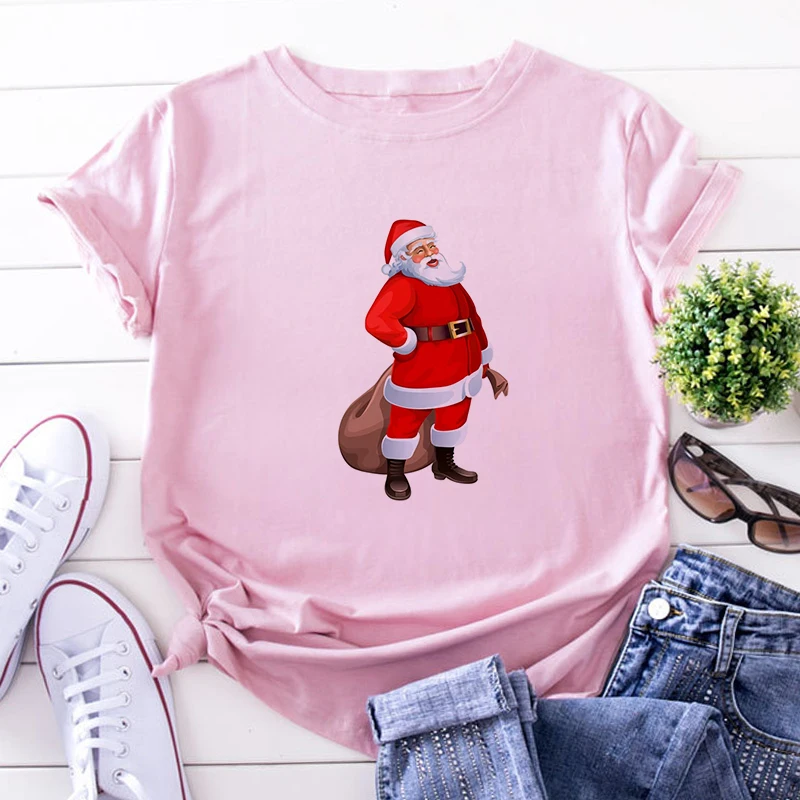 Модная Рождественская Женская Футболка Harajuku с принтом Санта Клауса, женская футболка, повседневный топ с коротким рукавом, женская одежда в готическом стиле, футболка