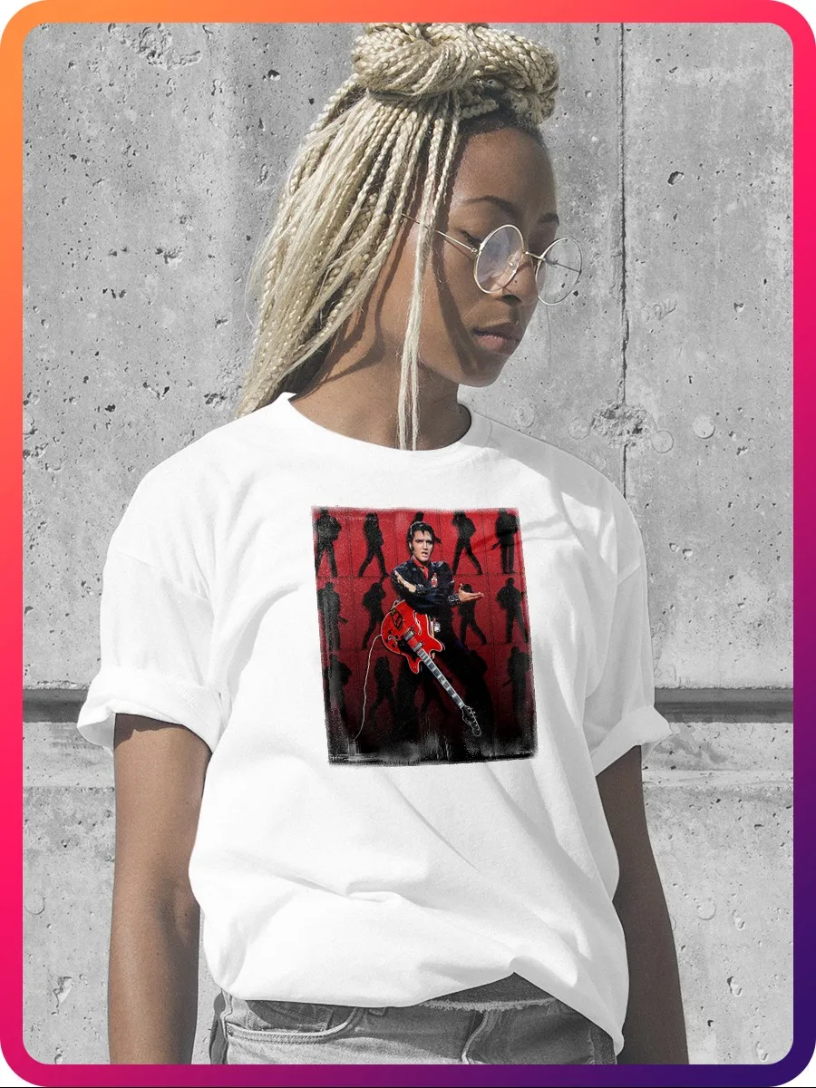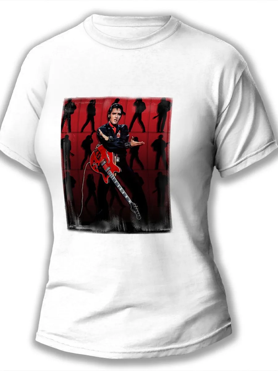 Женская футболка белая Элвис Пресли (Elvis Presley, музыка, Рок-н-ролл, Рокабилли) 9917