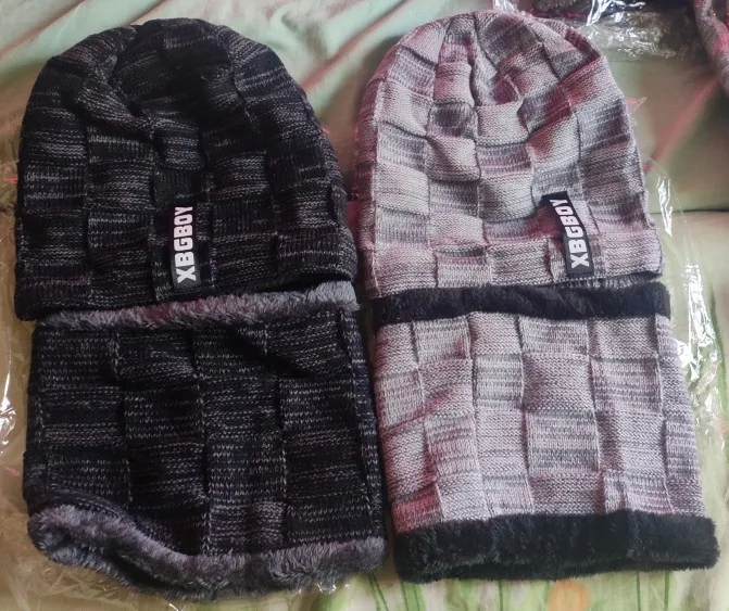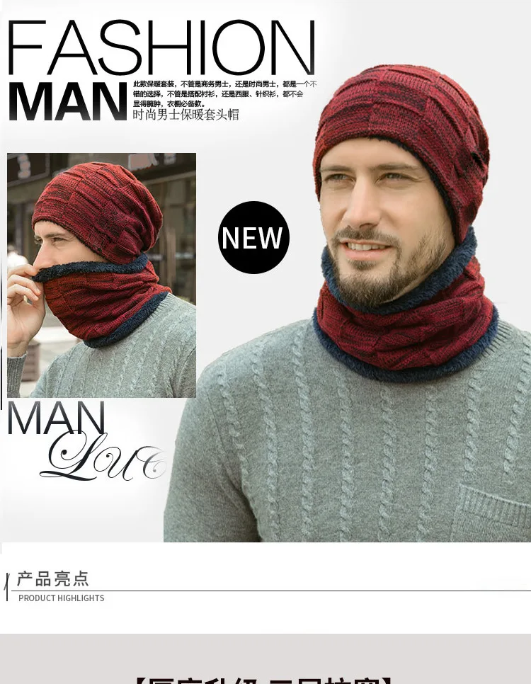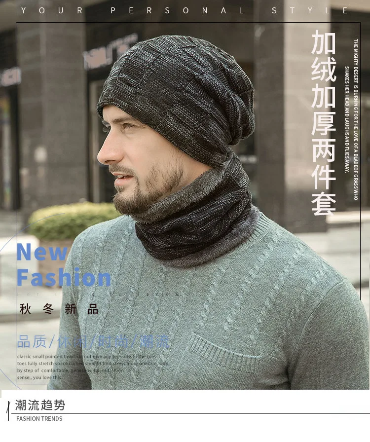 Зимняя шапка 2 шт.компл. облегающие шапки Мужская шапка шарф Манишк...