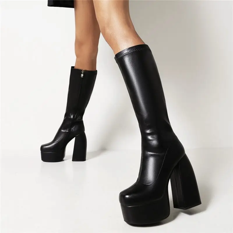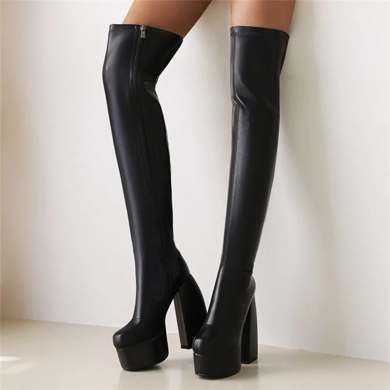 Женские сапоги на платформе MORAZORA, Черные Сапоги выше колена из искусственной кожи, на высоком каблуке