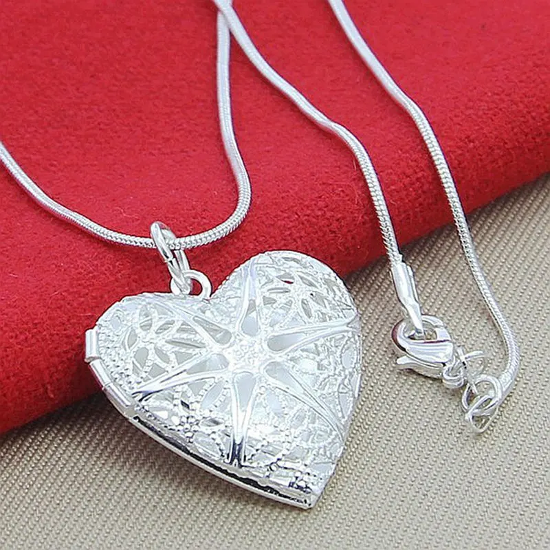 Ожерелье из серебра 925 пробы с кулоном-фоторамка, цепочка со змеиным плетением 18202224 дюйма для женщин, очаровательные свадебные модные украшения