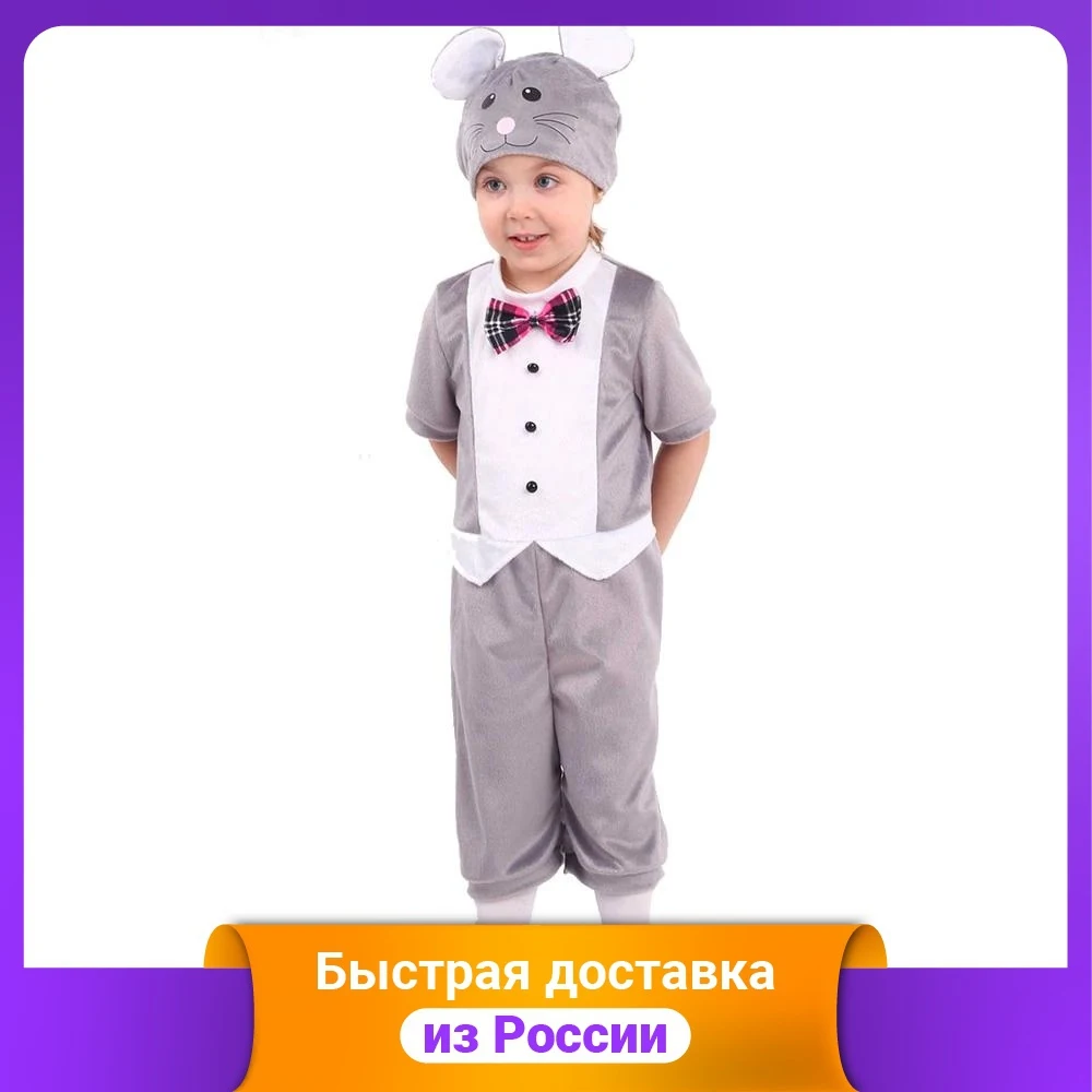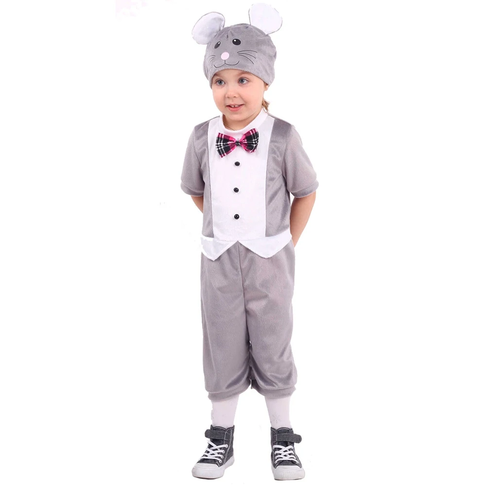 Карнавальный костюм Мышонок для мальчиков и девочек позволит создать волшебный образ милого зверька из сказки. В таком костюме ребенок сможет прийти на любой костюмированный праздник или сыграть в постановке. Костюм выполнен из плюша в сером цвете. В комплект входит комбинезон с маской-шапкой.Особенности:- Комбинезон имитирует костюм с бабочкой.- Короткие рукава и штанишки.- С пуговицами и розовой бабочкой в клетку.- Шапочка в виде головы мышонка с ушками.