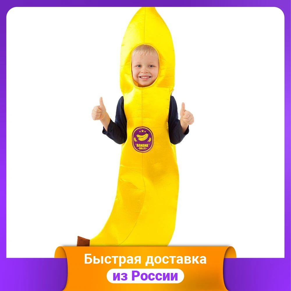 Все дети любят бананы, ведь они такие вкусные и яркие! А в костюме Банана любой ребенок не останется без внимания на детском празднике. Вместе с друзьями маленький сорванец сможет играть, шутить и смеяться в красочном и оригинальном карнавальном костюме Банана.Особенности:Костюм желтый в форме банана.Прорези лица, рук и ног.Логотип на груди.