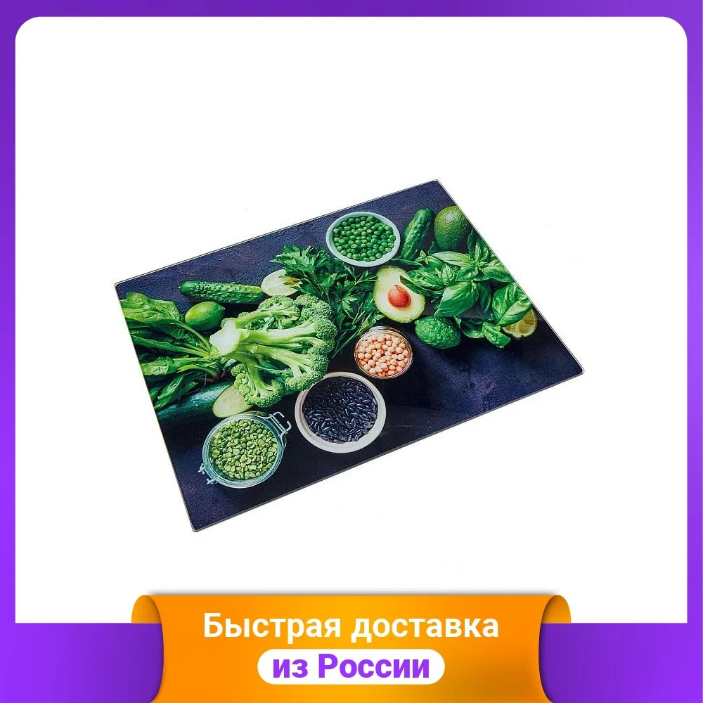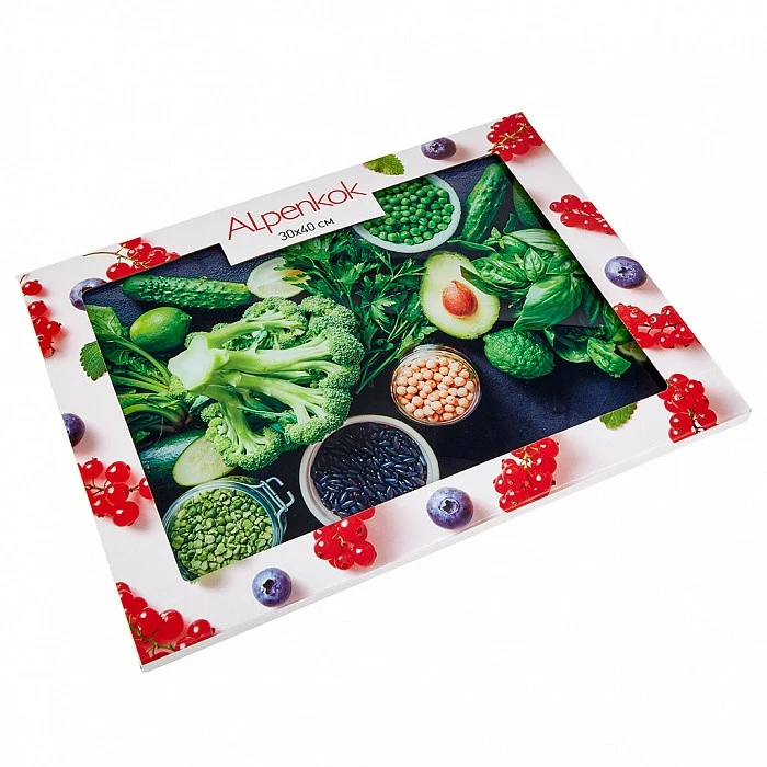 Доска разделочная стеклянная AK-9029 "Alpenkok. Салатный микс", 30x40 см