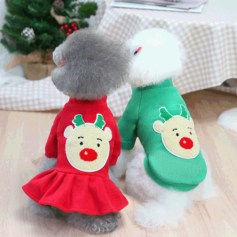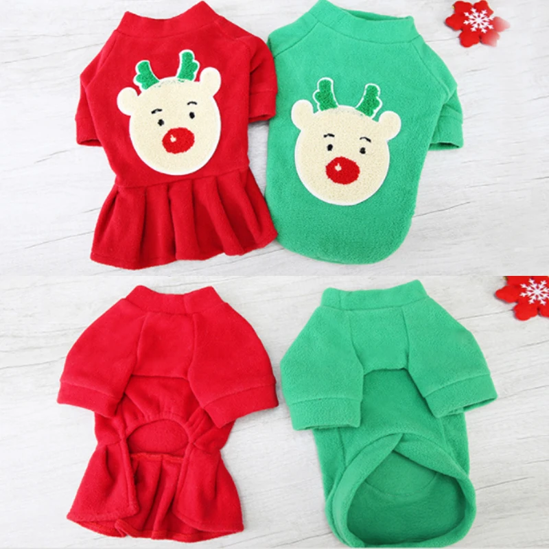 Новая зимняя одежда для собак, теплый плюшевый Рождественский костюм с оленем для пары, юбка, толстовки, одежда для собак, свитер для маленьких собак, одежда, костюм