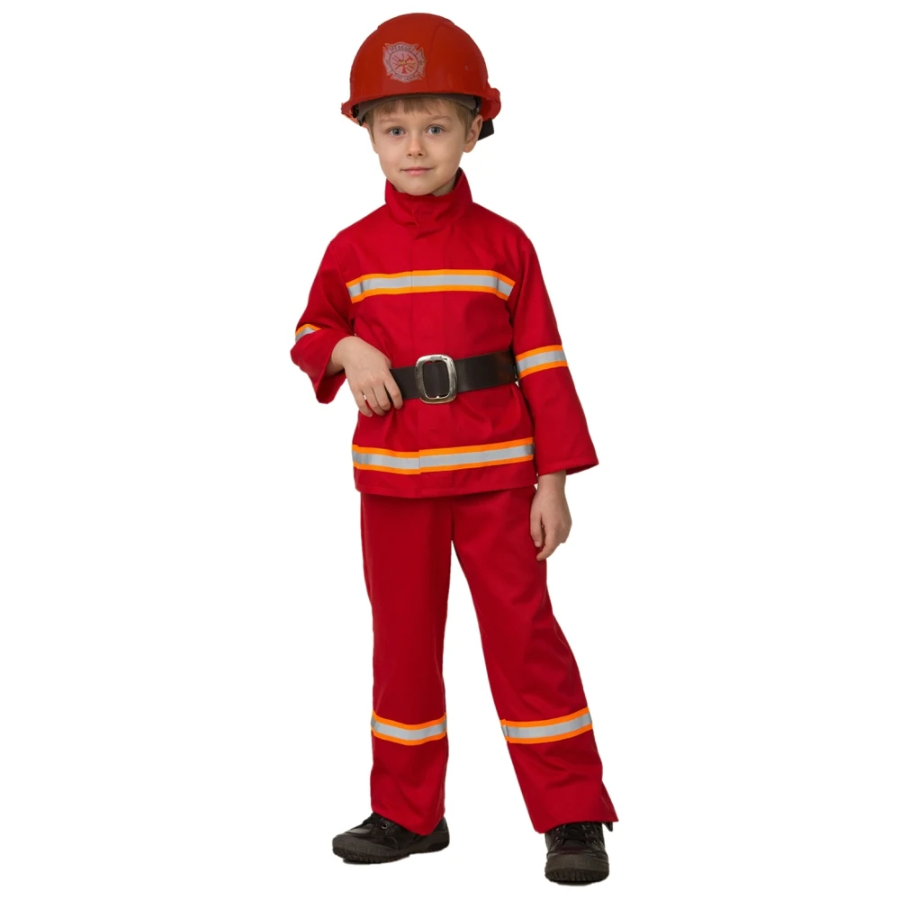 Карнавальный костюм "Пожарный" подойдет для праздника, посвященного тематике различных профессий. Мальчик, который мечтает стать пожарным, непременно оценит этот реалистичный и эффектный карнавальный костюм. В комплект входит красная куртка, штаны, ремень и каска.Особенности:- Куртка с высоким воротником и застежками-липучками.- Горизонтальные полосы из светоотражающей ткани.- Широкий ремень с пряжкой.- Брюки прямого кроя.- Пластмассовая оранжевая каска дополняет образ.