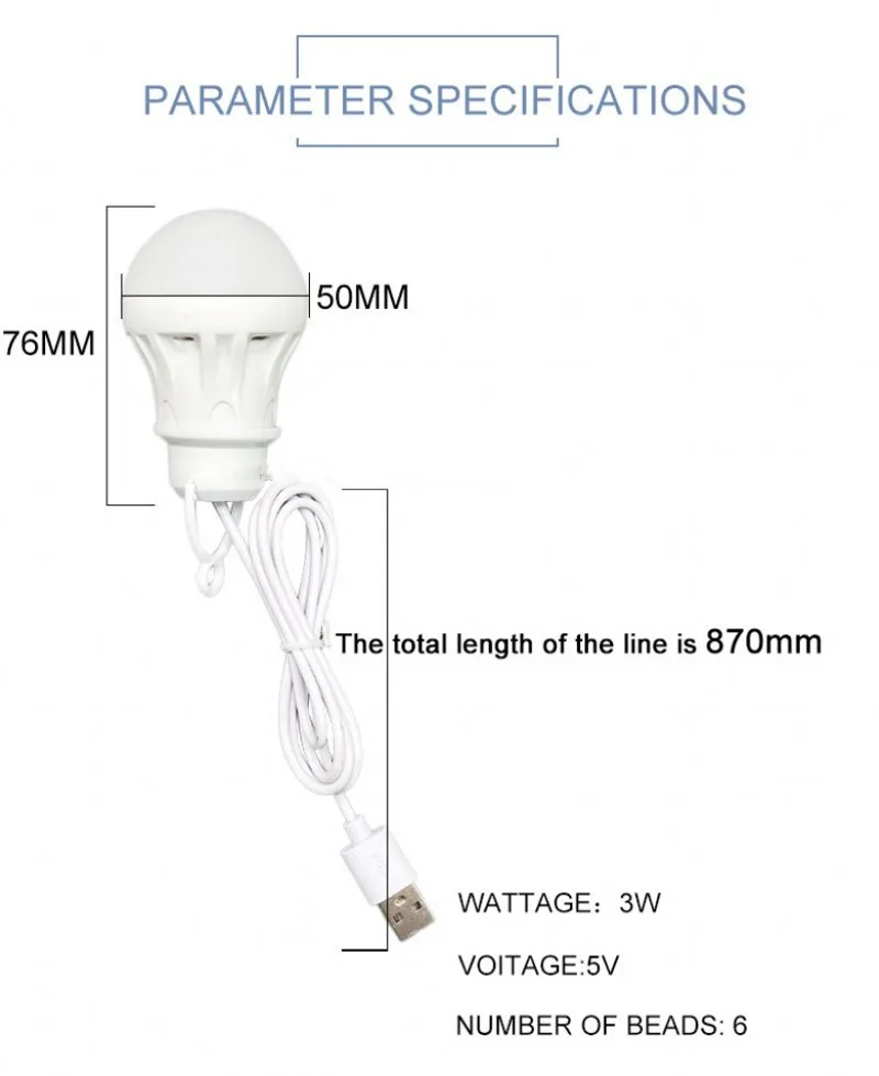 Портативный светодиодный светильник Светодиодная лампа USB 3 Вт, 5 ...