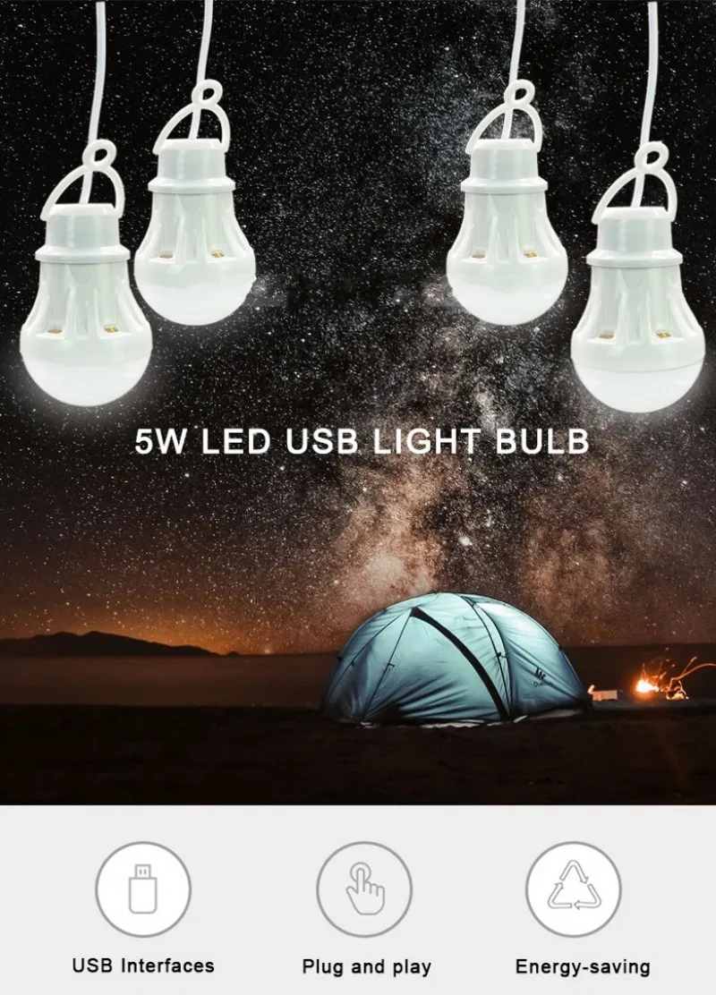 Портативный мини-светильник для кемпинга, лампы с USB, 5 В, светоди...