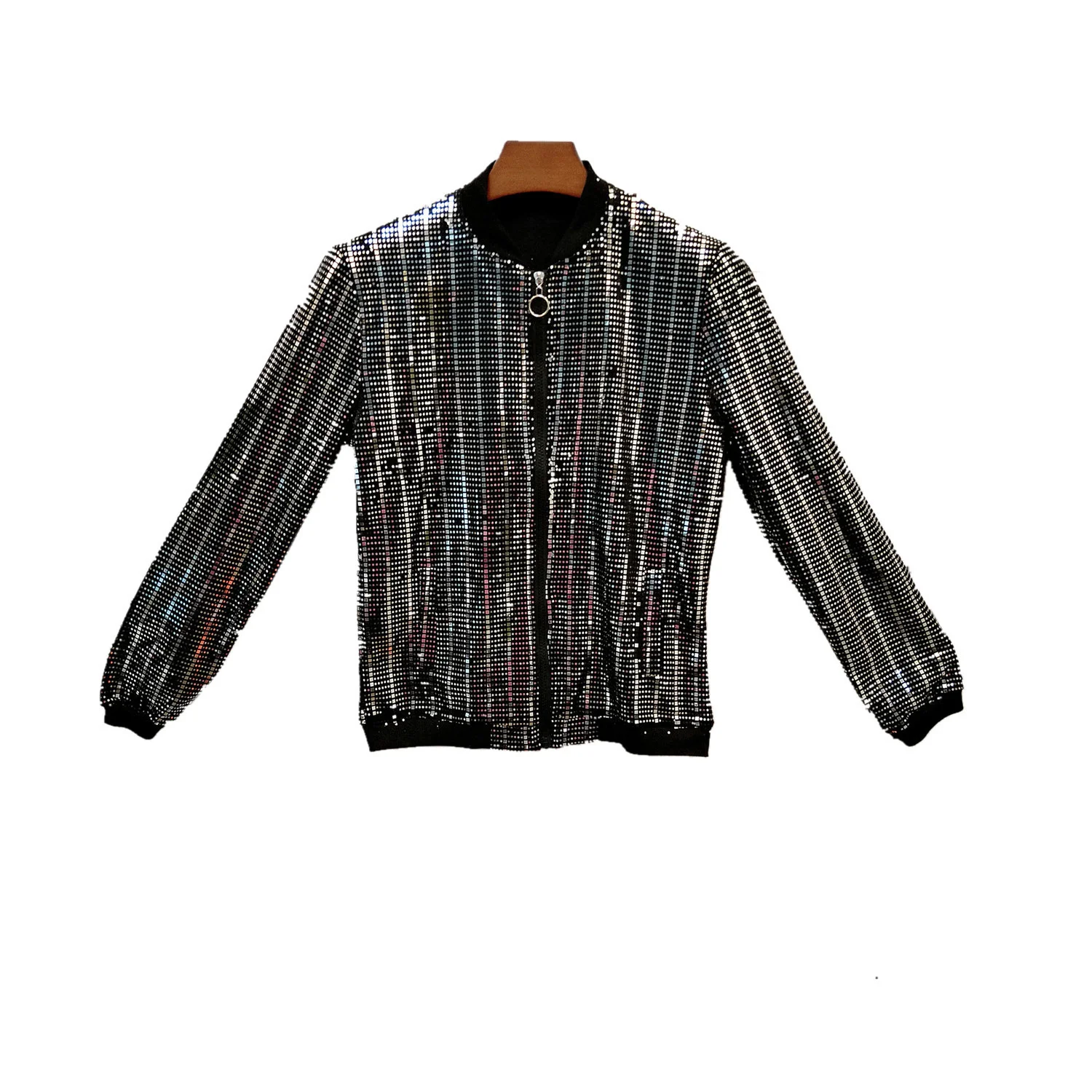 Куртка-бомбер мужская с блестками, тонкий пиджак на молнии с длинны...