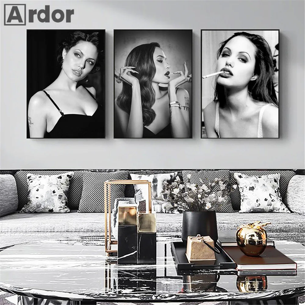 Картина на холсте Анджелина Джоли, плакат из фильма Звезда, черно-белый Принт, сексуальная женщина, настенные картины, декор для гостиной
