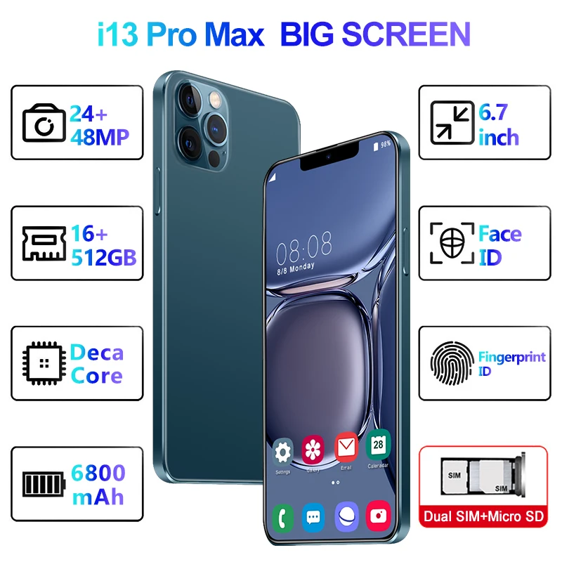Смартфон, 6,7 дюйма, 5800 мач, 4 ядра, 16 + 512 ГБ, Android