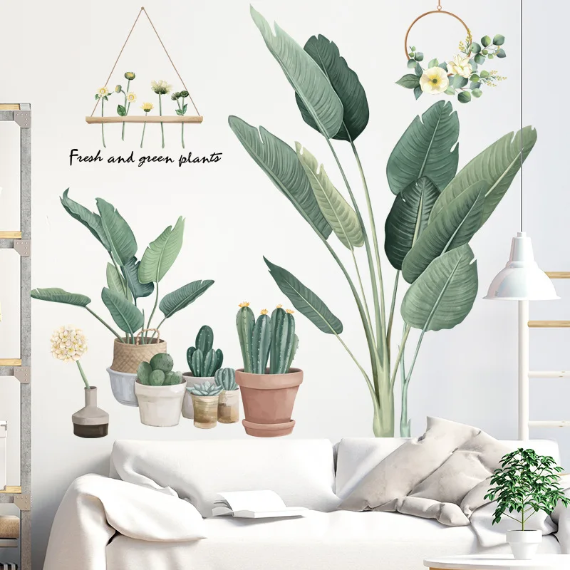 Кактус горшечные растения настенные наклейки для гостиной экологически чистые виниловые зеленые листья DIY настенные наклейки фрески домашний декор