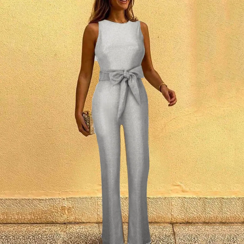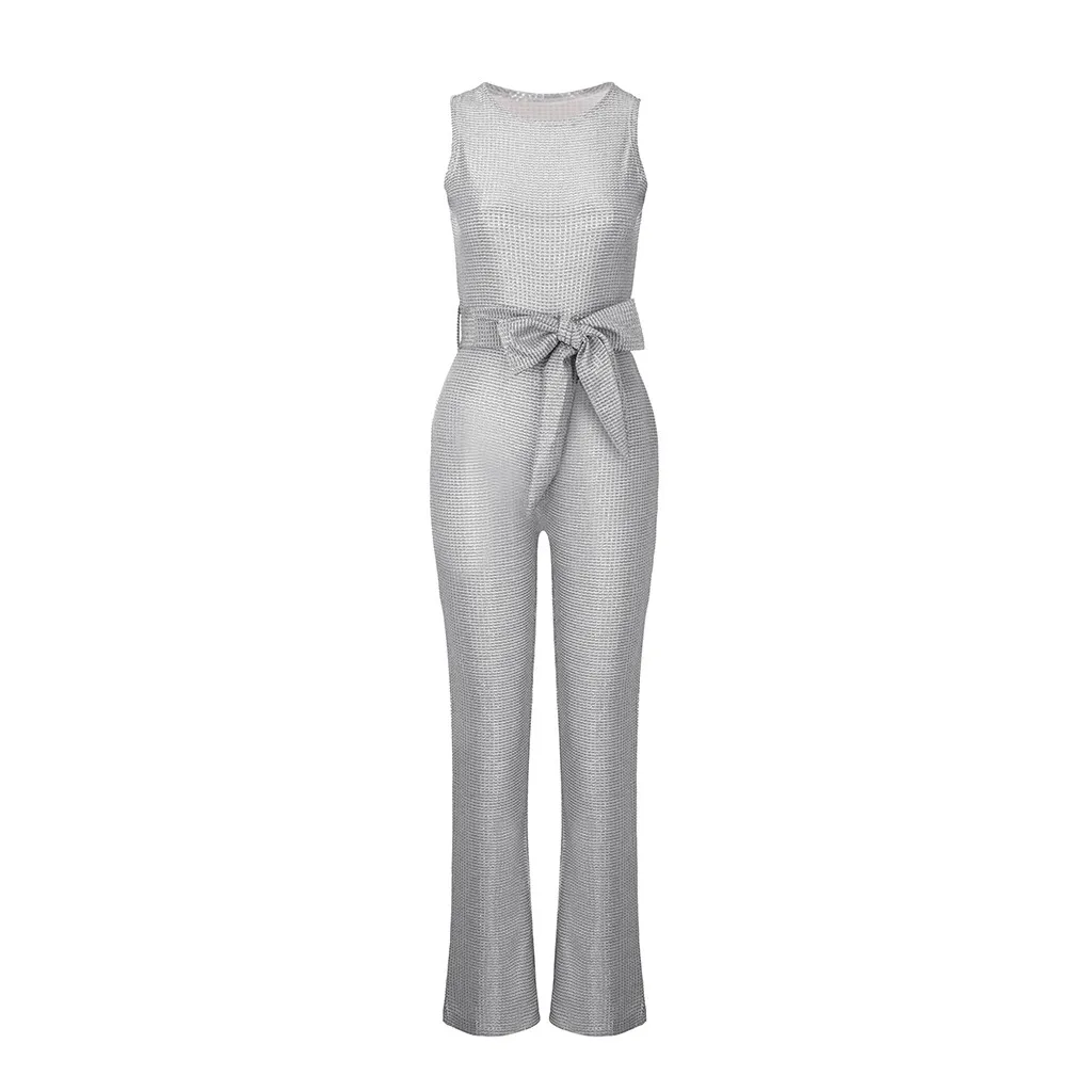 Модный женский летний однотонный повседневный комбинезон без рукавов с широкими штанинами