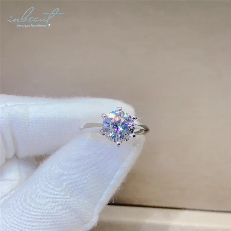 Круглое Сверкающее кольцо inbeaut с муассанитом, кольцо из 925 проб...