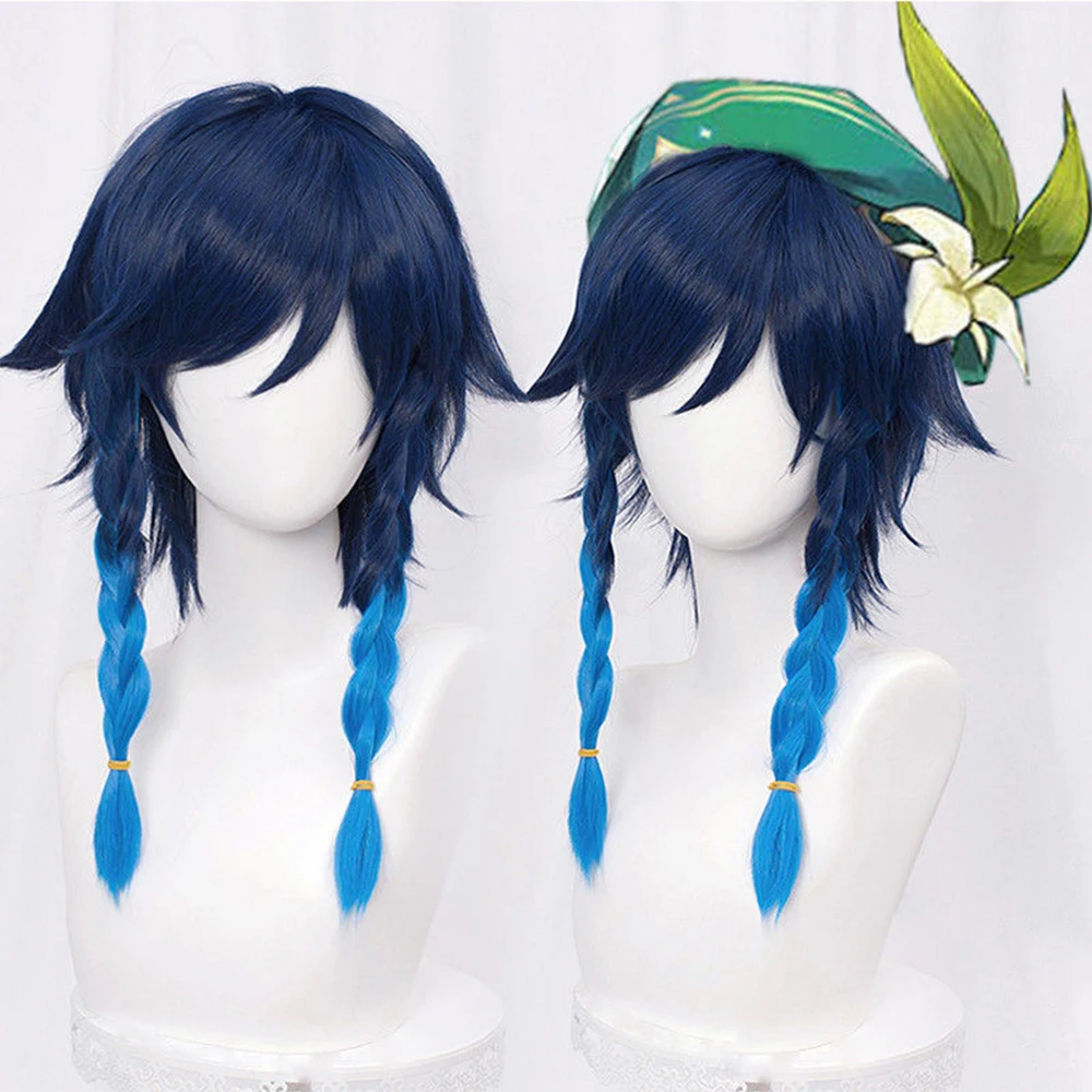 Genshin Impact Venti косплей парик Градиент Синий короткий Плетеный...