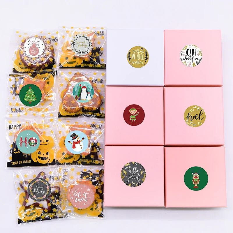 500 шт. этикетки 2,5 см, Счастливого Рождества, дизайнерские ярлыки для рождевечерние подарочной коробки, украшения для сумок, герметичные этикетки для конвертов