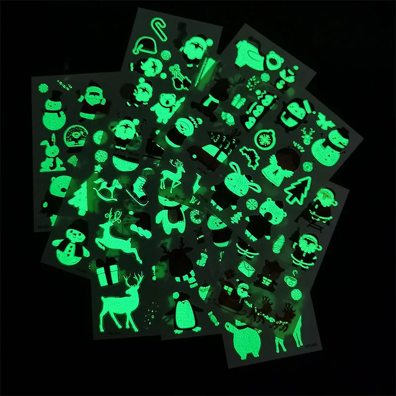 Рождественские наклейки для татуировок, светящиеся Детские временные искусственные татуировки, светящиеся в ТРК-палке, на лицо, рука, нога для детей, боди-артUSD 3,57/Шт/Лот 10