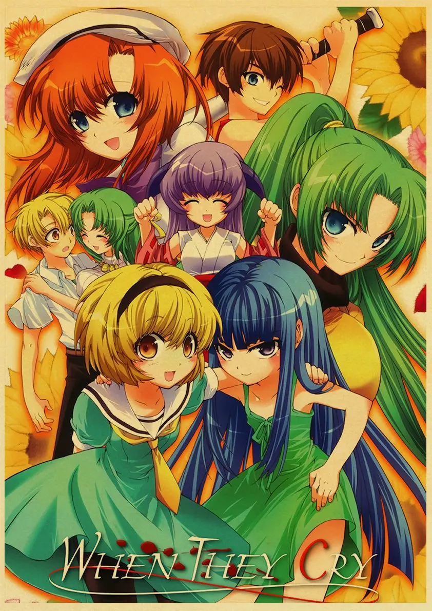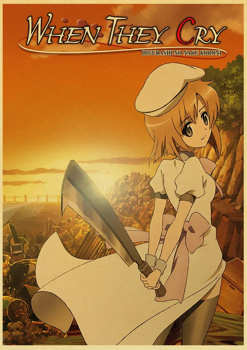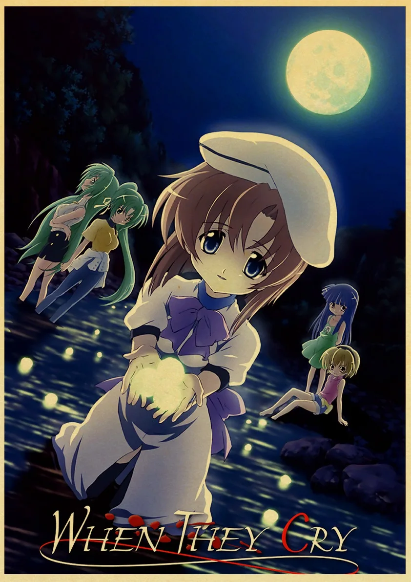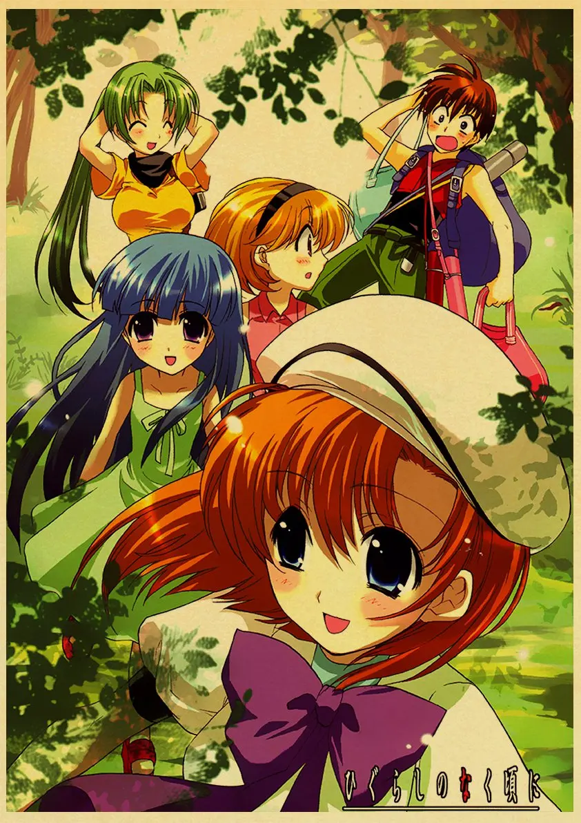 Аниме-постер Higurashi no naku koro ni в стиле ретро, Холщовый материал, печать, настенные художественные украшения, настенные наклейки для детской комнаты, роспись o512