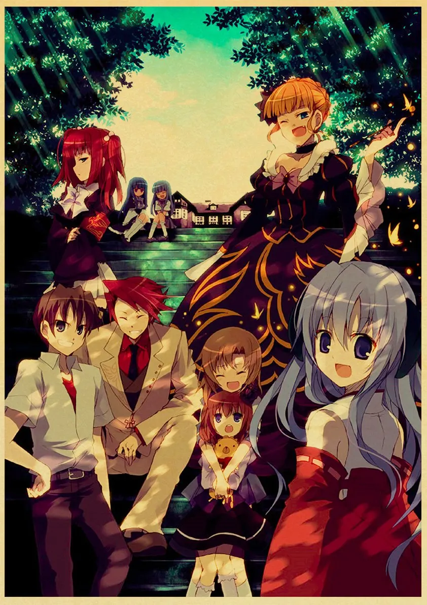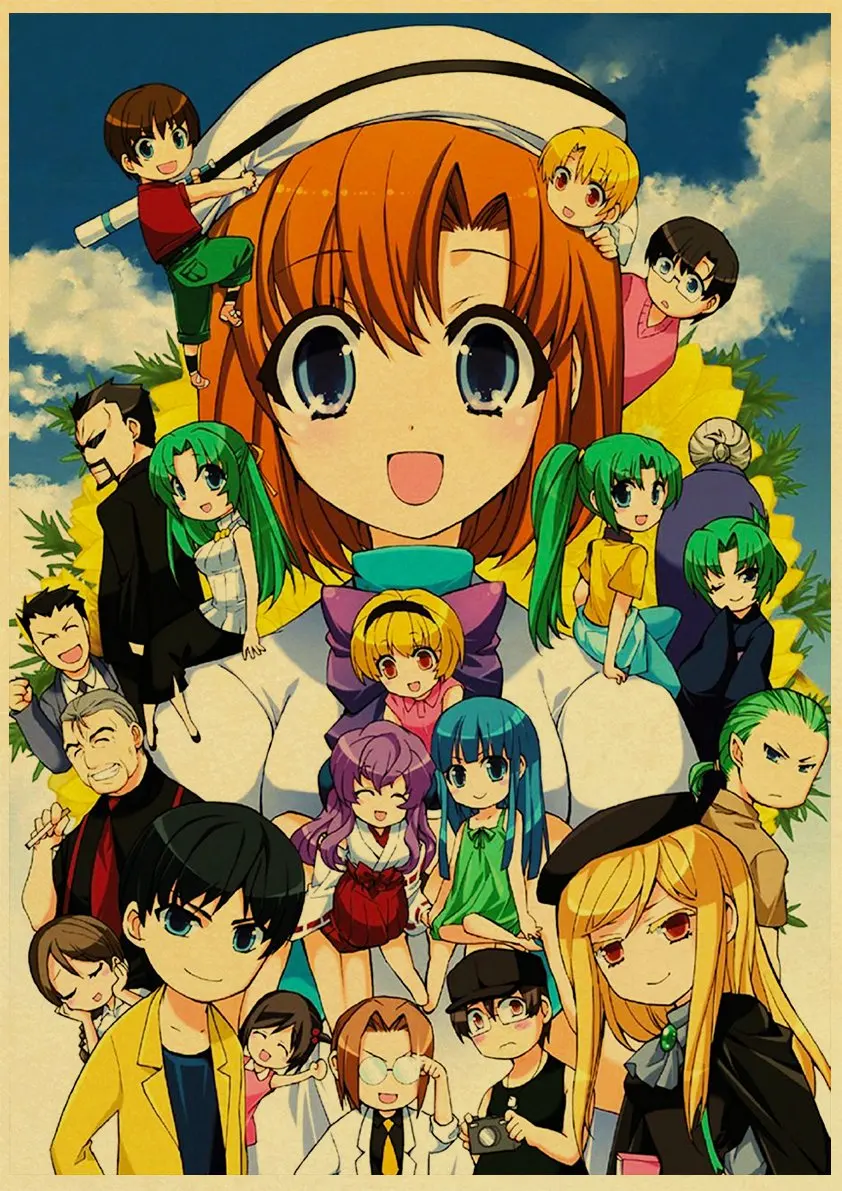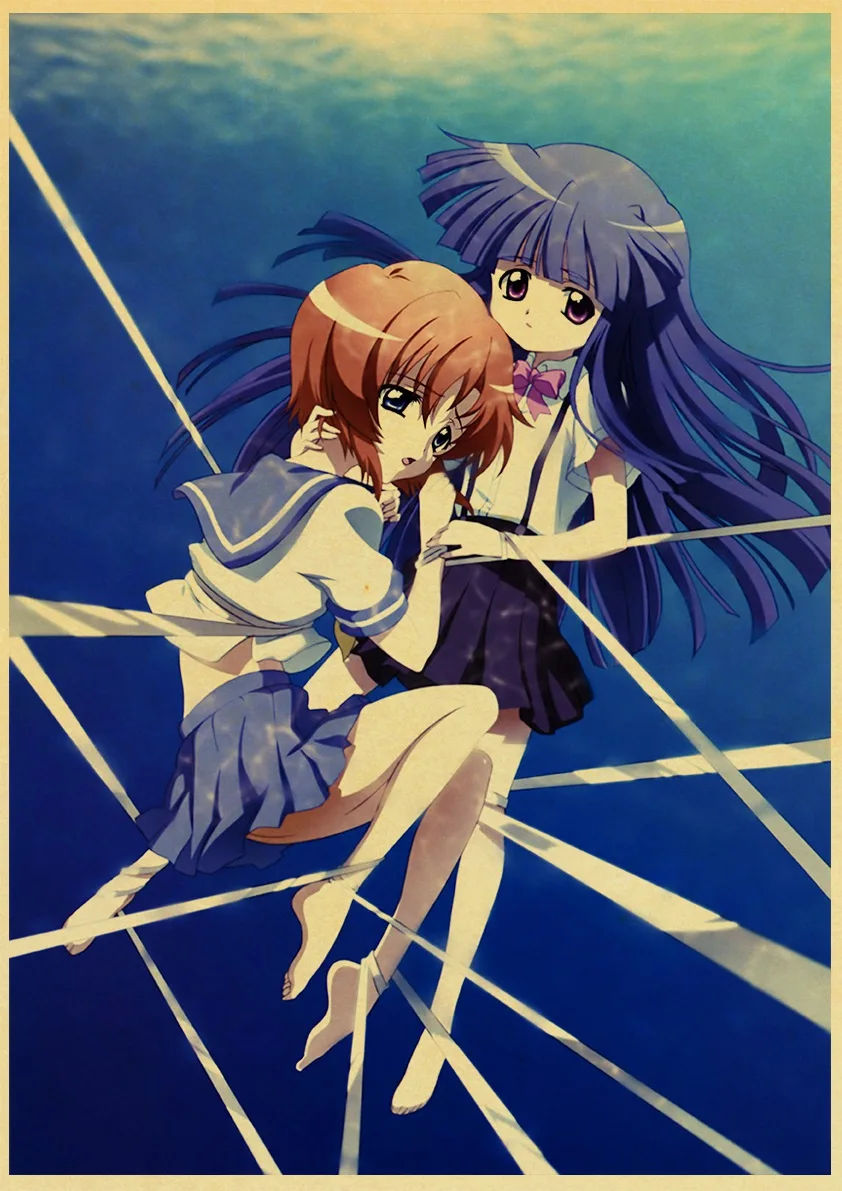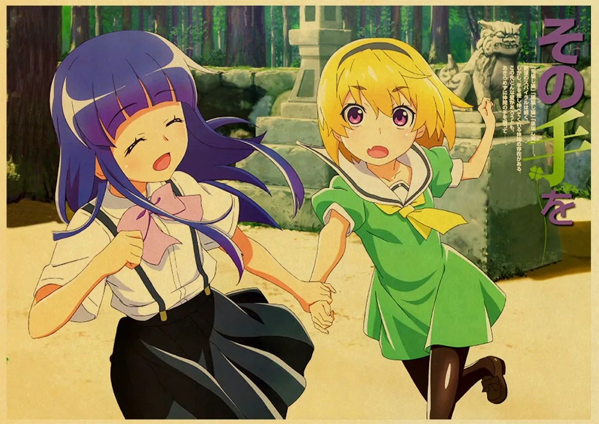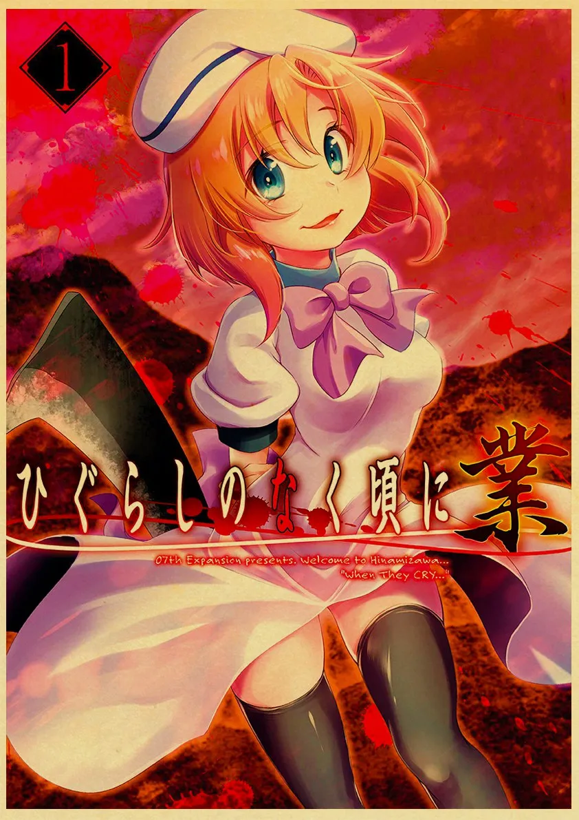 Аниме-постер Higurashi no naku koro ni в стиле ретро, Холщовый материал, печать, настенные художественные украшения, настенные наклейки для детской комнаты, роспись o512