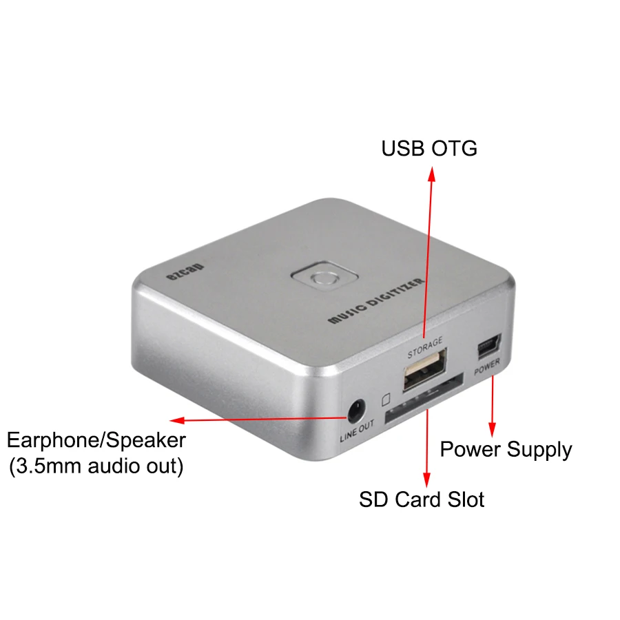 С ezcap241 музыкальный дигитайзер, вы можете легко конвертировать свою старую аналоговую музыку в MP3 и сохранить в Usb-накопитель или sd-карта без компьютера, и он может автоматически разделять все песни музыки.