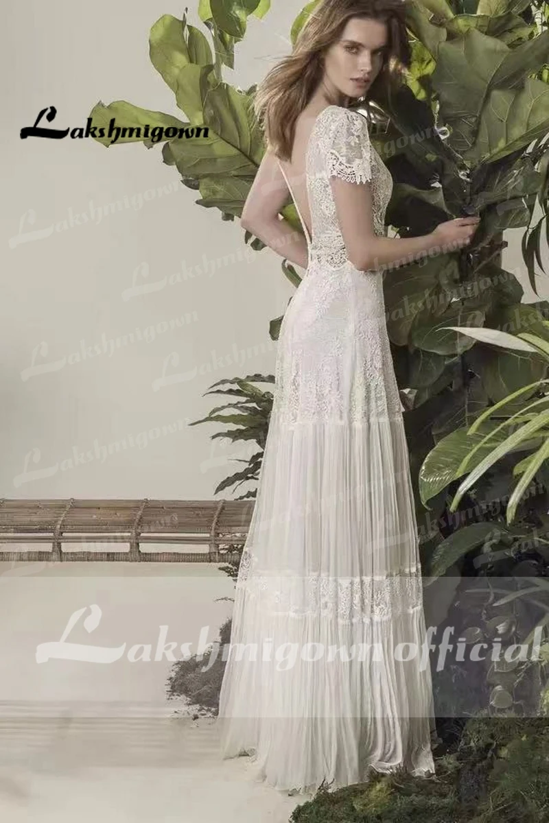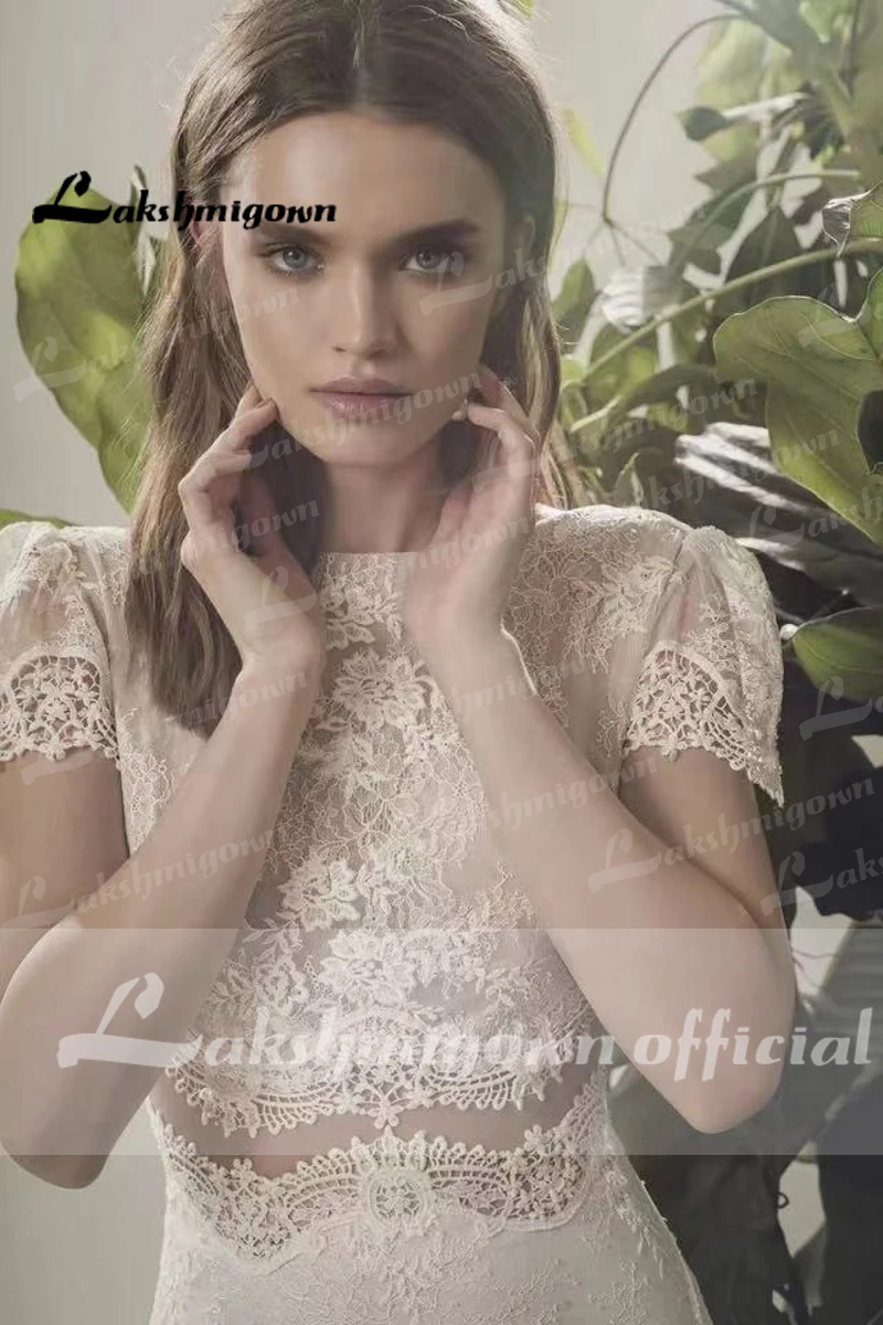 Lakshmigown Новейшие свадебные платья Lvory из двух частей кружевные свадебные платья с коротким рукавом вырезом лодочкой для невесты с открытой спиной