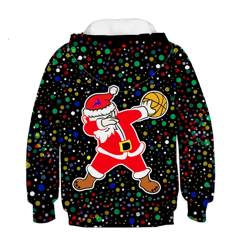 Новинка, яркая Рождественская Толстовка с капюшоном для мальчиков, весеннее пальто с капюшоном с 3D принтом Санта-Клауса для мальчиков, Детская верхняя одежда, детская одежда