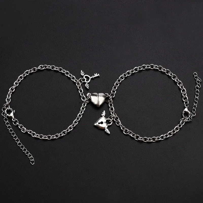 Магнитный браслет в форме сердца для влюбленных из нержавеющей стал...