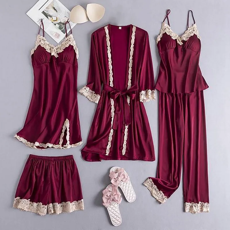 Халаты, женский халат, пижамный комплект, шелковая одежда для сна, домашняя одежда, пеньюар, ночная рубашка, пеньюар, халаты, 5 шт.