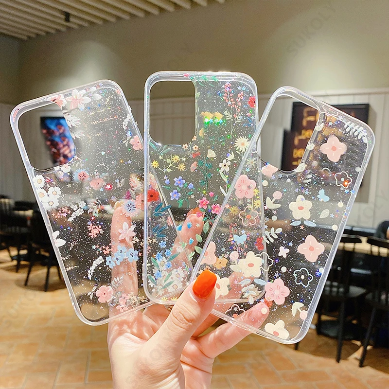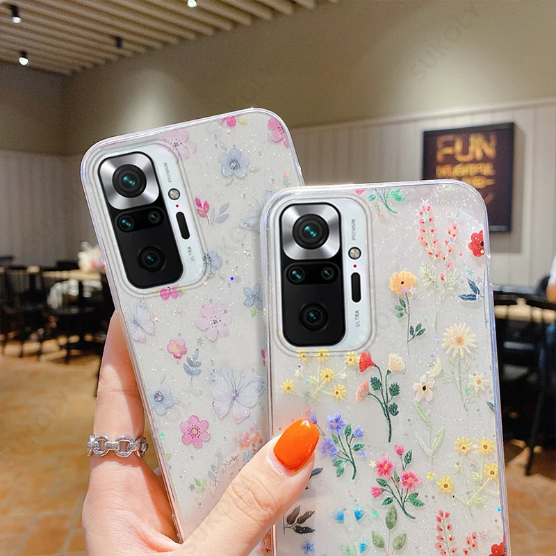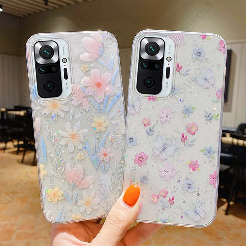 Милый блестящий чехол с цветами для Xiaomi Redmi Note 10 9 8 Pro 9S 10S 11T Mi 11 Lite 5G NE Poco X3 M4 Pro
