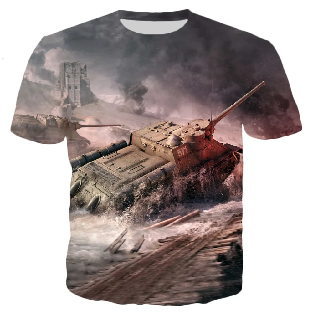Мужская футболка с рисунком танков, летняя, с 3D принтом, с космосо...