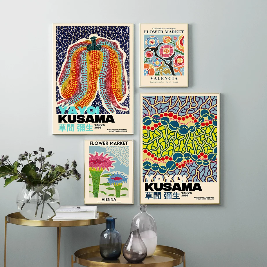 Абстрактная тыква, цветок, глаза Yayoi Kusama, настенная Картина на холсте, постеры и принты в скандинавском стиле, настенные картины для гостиной