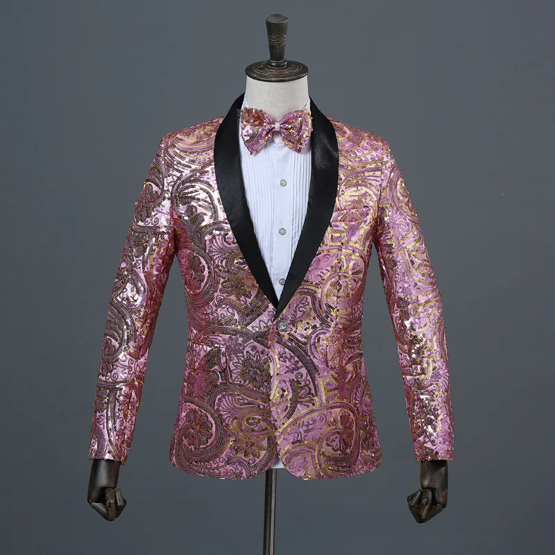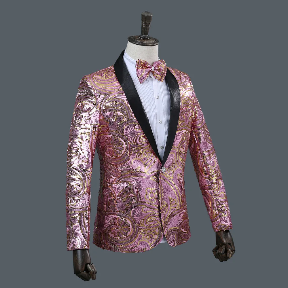 Костюм мужской из полиэстера, причудливый костюм певицы с блестками, на одной пуговице, классический блейзер розового, желтого цветов, для выступлений