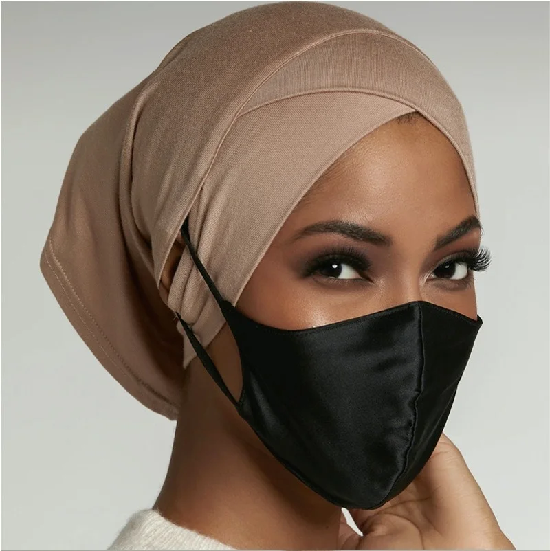 Новинка 2021 Модальные ушные вкладыши мгновенный шарф эластичный дышащий мусульманский двойной перекрестный лоб женский головной платок тюрбан шляпа