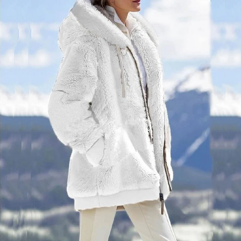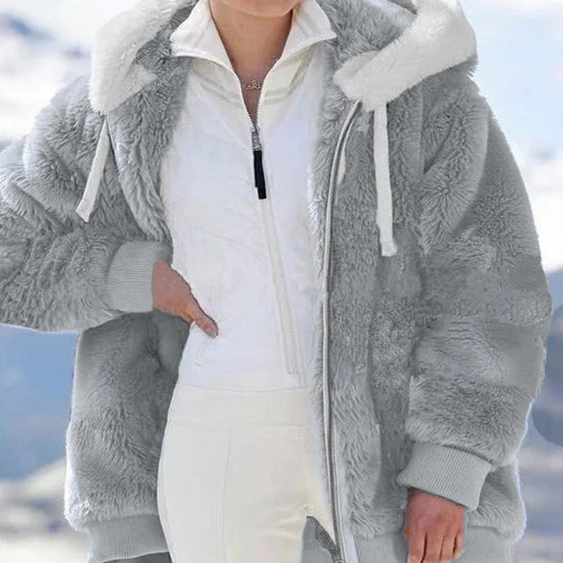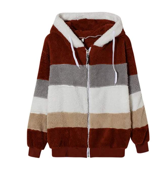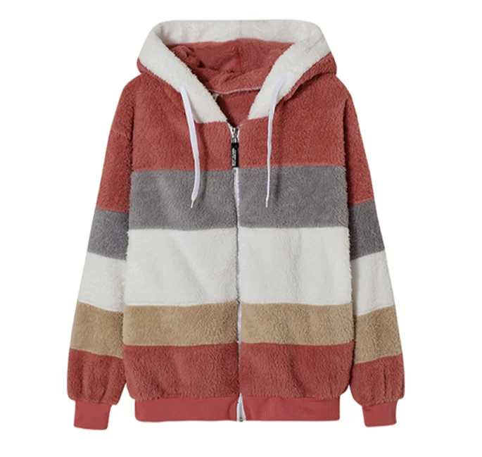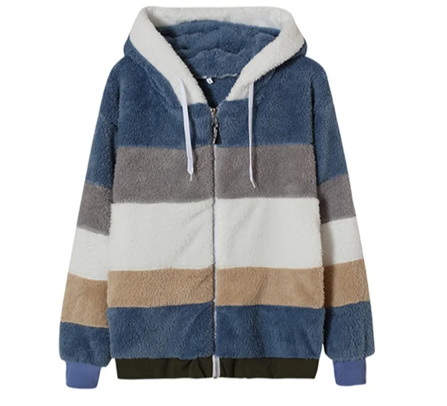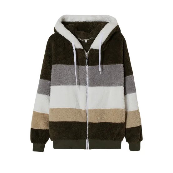 Зимняя женская куртка, теплая Толстая плюшевая Свободная куртка с капюшоном, однотонная Лоскутная зимняя верхняя одежда из искусственного меха на молнии, Женская парка, пальто