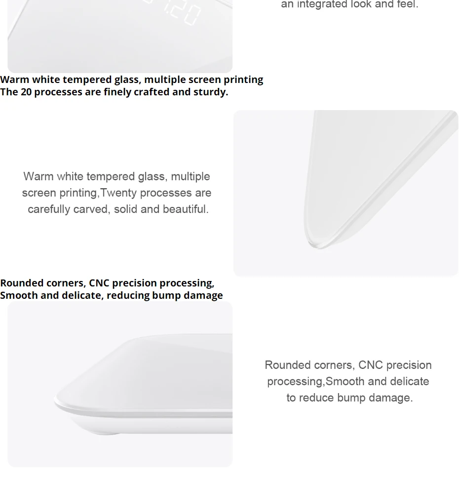 Вес тела может варьироваться даже в небольших пределах, но даже эти изменения могут играть важную роль в организме. Умные весы от Xiaomi оснащены датчиком g-давления высокой точности, изготовленным из стали с примесью марганца, что делает материал еще прочнее. Датчик сделан в соответствии с инновационными технологиями и обеспечивает тщательный контроль. Для достижения максимального уровня точности при взвешивании инженеры Xiaomi обновили стандартные алгоритмы измерения веса, которые нашли широкое применение в традиционных весах с электронным наполнением. Разработчики также применили 3 типа алгоритмов, которые обеспечивают регистрация большего количества данных в течение минимального периода времени. Это напрямую влияет на точность веса и Погрешность показаний, которая уменьшается более чем в 2 раза в отличие от других аналогичных устройств