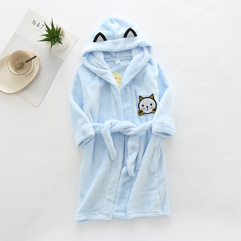 Халаты для мальчиков и девочек, одежда для сна для мальчиков, халат, пижама для маленьких мальчиков и девочек, детский халат на шнуровке с капюшоном и мультяшными животными, зима