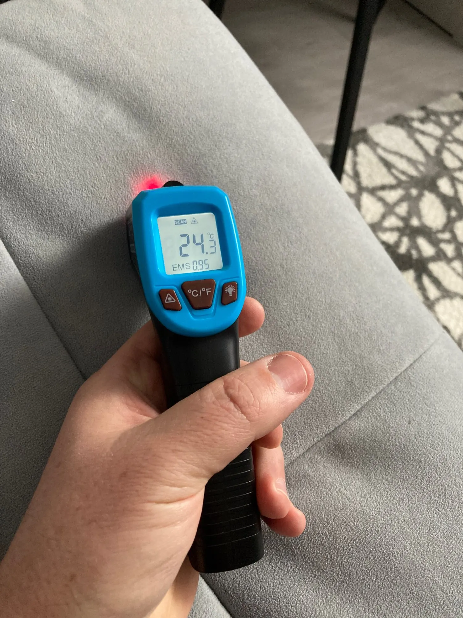 Пирометр новый, не использовался. Я еще не тестировал устройство в середине приготовления или выпечки, но на полу работает ли человеческая рука.; P батарейки в комплект не входят. Посылка хорошо защищена. Быстрая доставка. 27,03 заказал, и 07,04 был в пл. Хороший контакт с продавцом.