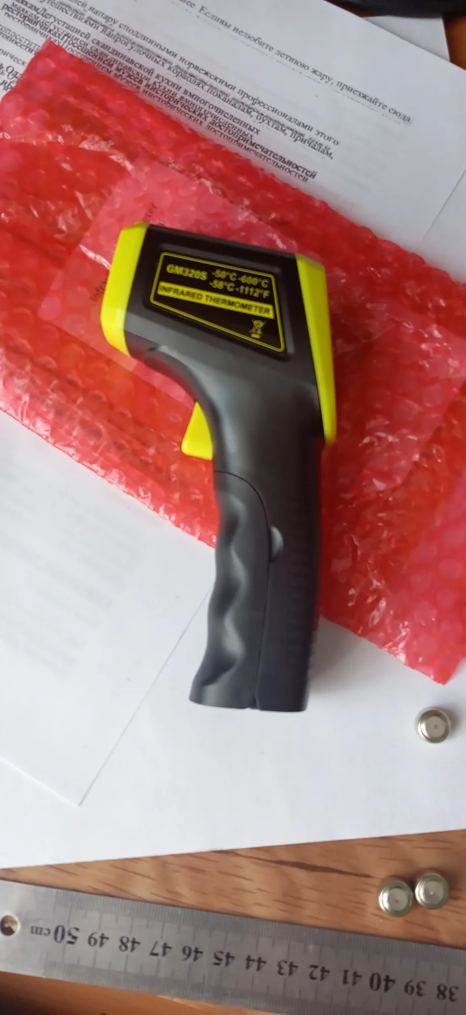 Быстрая доставка. Изготовлен из дешевого пластика, дома измерял температуру вроде нормально измеряет, но стоит ему полежать в прохладном помещении, сразу начинает врать на 4-5 градусов в большую сторону. Единственное что понравилось моему коту, это лазерная точка пирометра)
