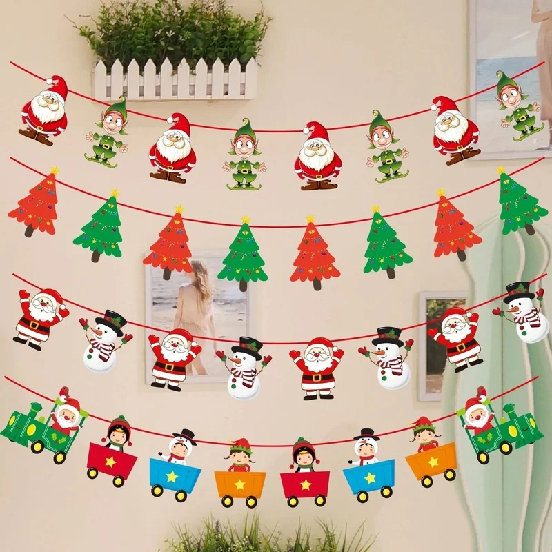 3 м гирлянда, рождественские баннеры, баннер Санта-Клаус, снеговик, лось, флаг, Рождественские елки, баннеры, декор 2022, Рождественский Декор для дома