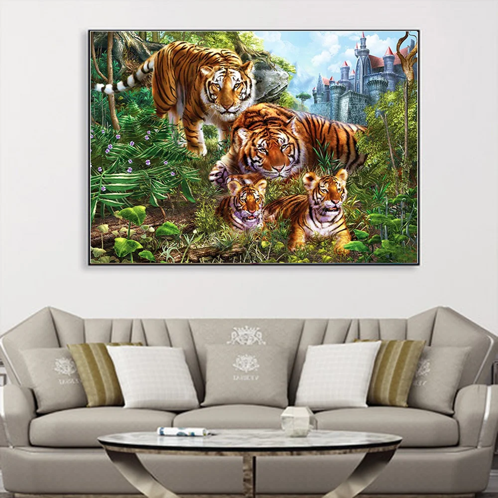 Алмазная живопись Huacan Diy, тигр, бриллиантовая вышивка, животное, природный пейзаж, мозаичная наклейка, Декор
