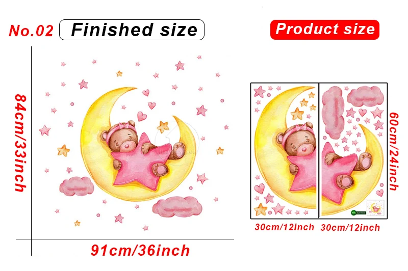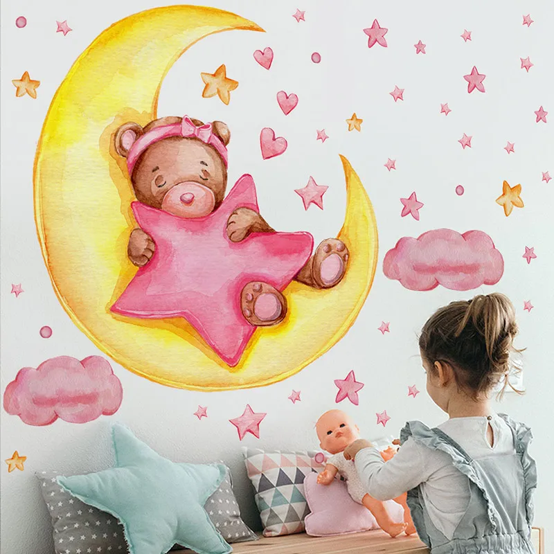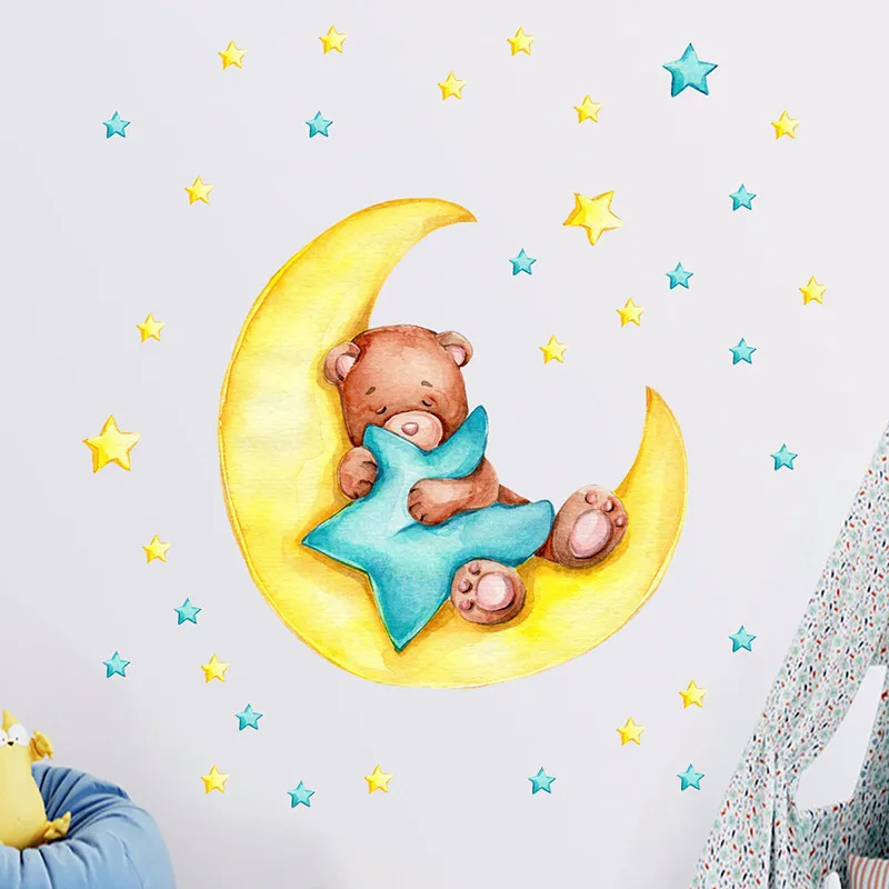 Мультяшный медведь Луна Звезда серия настенные стикеры ПВХ наклейки...