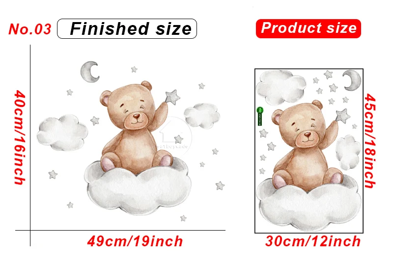 Мультяшные медведь облако настенные стикеры Луна облако большие нас...