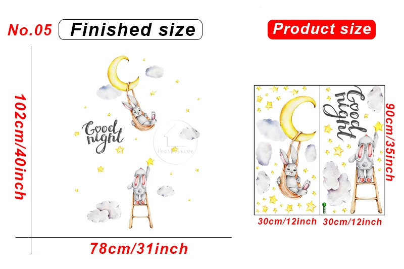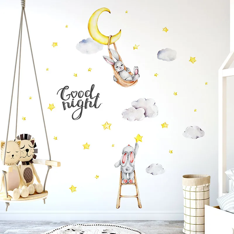 Милые Мультяшные наклейки на стену в виде медведя, кролика, звезды,...