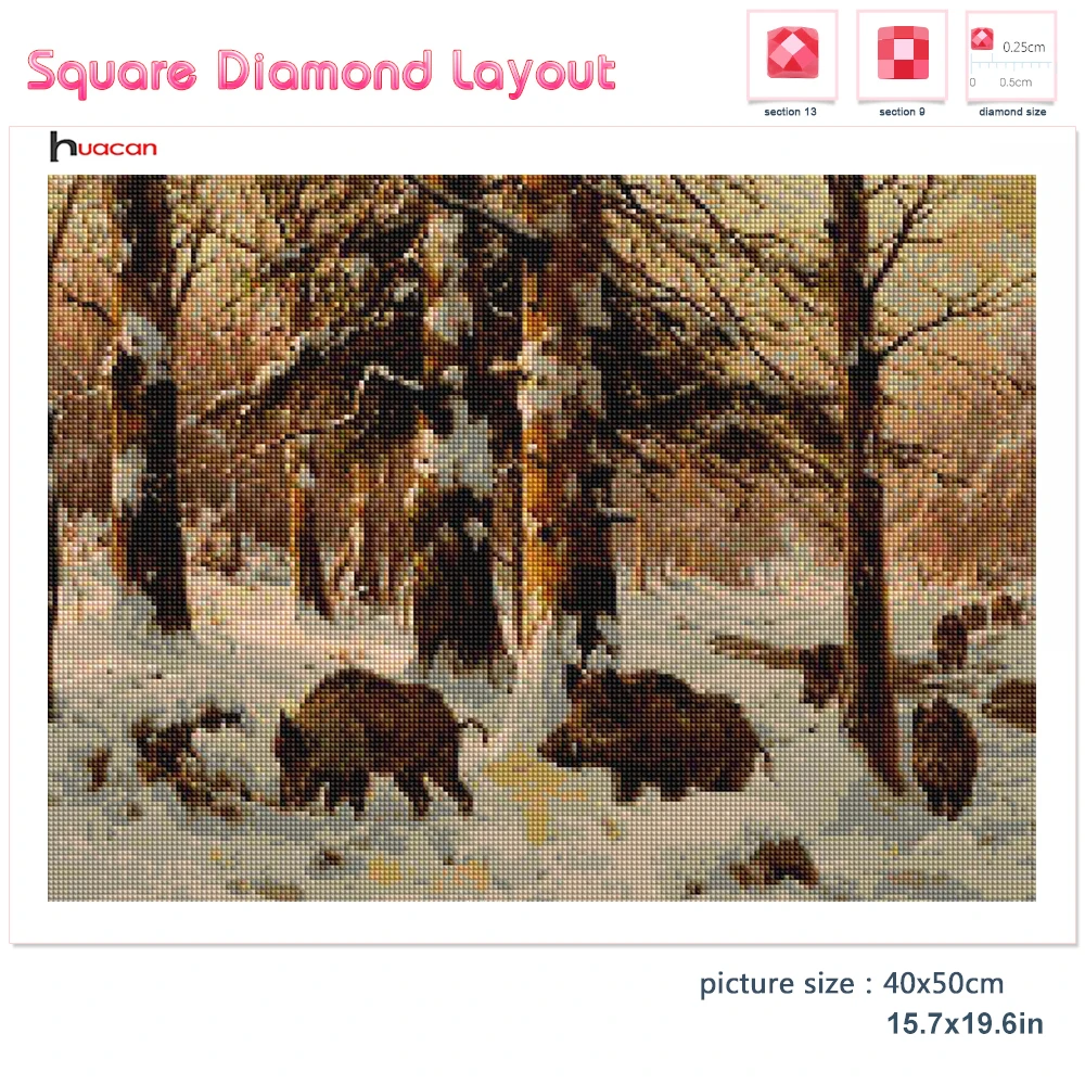 Алмазная живопись Huacan 5d "сделай сам", свинка, Зимнее дерево, алмазная вышивка, животное, снежный лес, мозаика, декор для комнаты