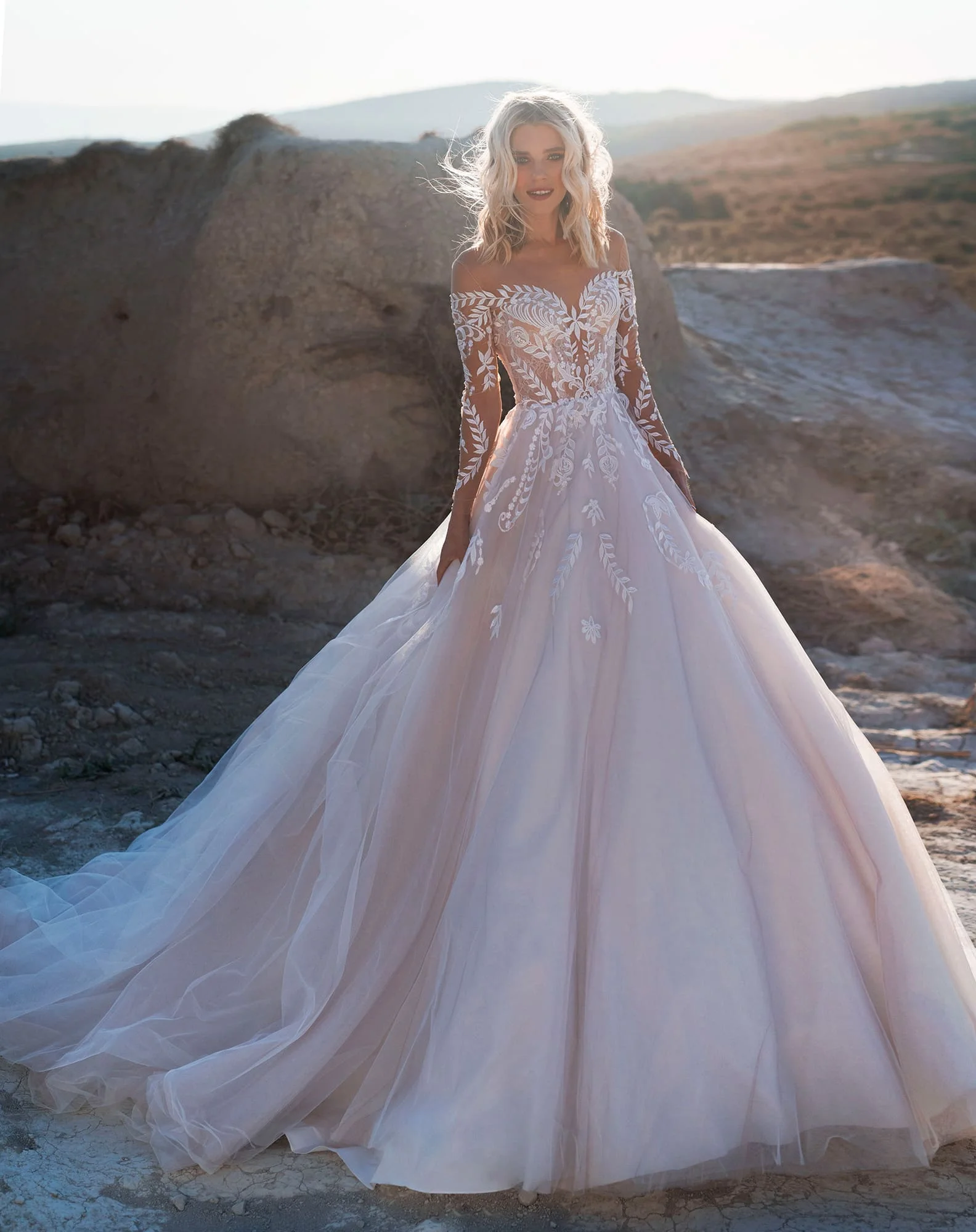 Бальное платье принцессы кружевные свадебные платья с длинным рукав...