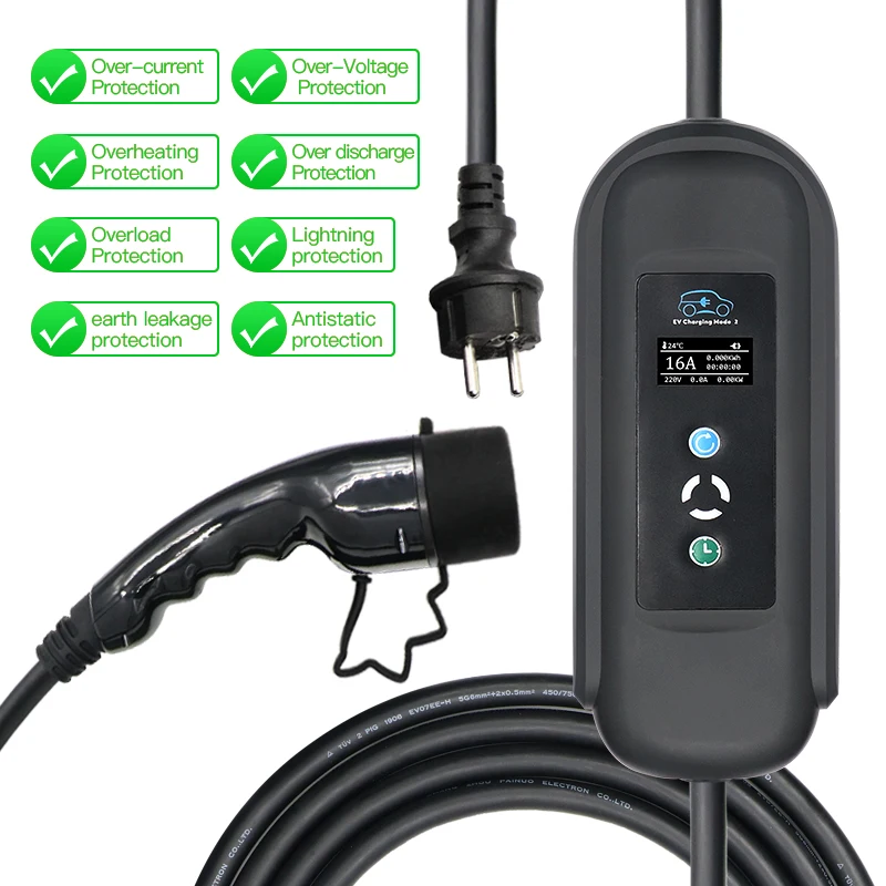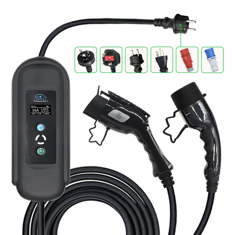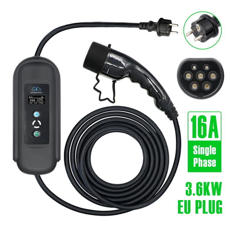 Регулируемое портативное зарядное устройство Level2 для электромобилей Тип 2 электрическое автомобильное зарядное устройство 3,6 кВт 16 А 1 фаза IEC62196 Тип 2 5 м кабель с адаптером EU Schuko