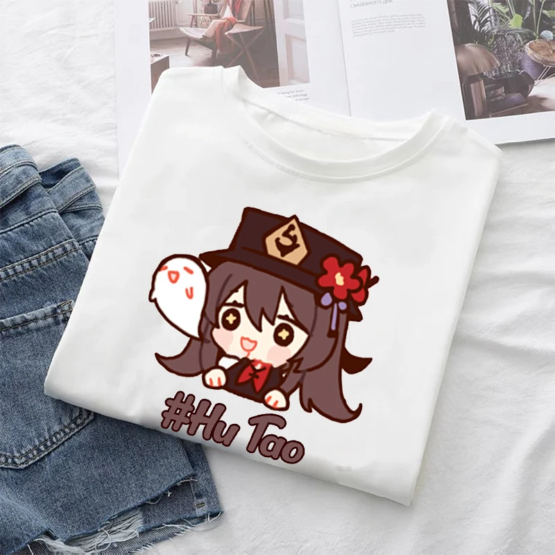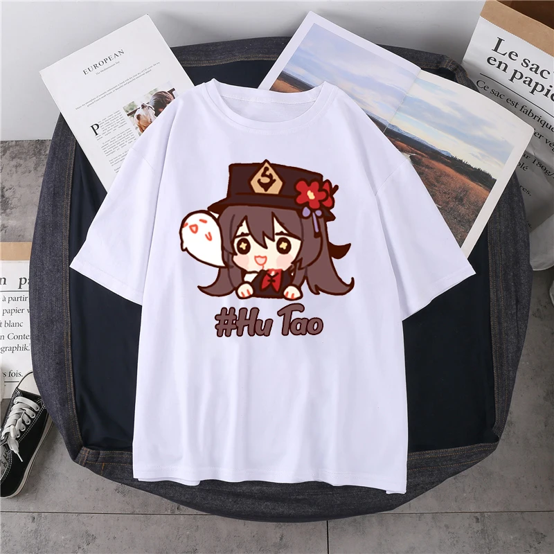 Футболка Genshin Impact с принтом персонажа игры Kawaii Hu Tao, женские топы, милая стильная уличная одежда унисекс, Женские повседневные футболки большого размера