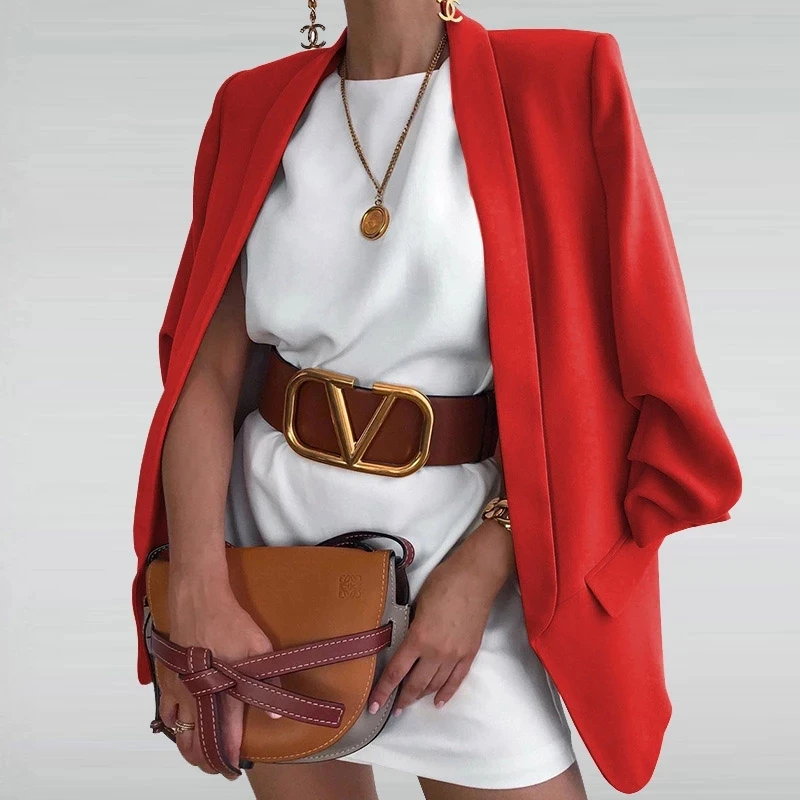 Женский блейзер 2021, простое однотонное пальто, топы, Женский блейзер с длинным рукавом, облегающая Офисная Женская Блейзер большого размера