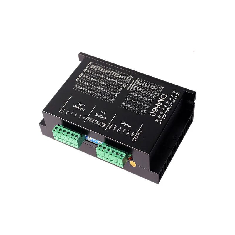 Общий для сигналов 5 В и 24 ВОсобенности:Этот драйвер является DSP цифровой dm860 Драйвер шагового двигателя, который разделен и поднятРаздел to128, подходит для целей высокое подразделение. Подходит для шагового двигателя: 57,86 Тип2-х фазный 4 фазы (4-проводной 6-медный провод 8-провод)1.20v-80v DC / 18v-50v AC источника питания;2.H-bridge биполярный постоянный фазовый токовый привод;3.Восемь выходных токов с током до 7,2 а являются необязательными;4.15 режимов разделения, которые могут быть разделены на 128, являются необязательными;5.Высокоскоростная фотоэлектрическая изоляция входного сигнала;6.Стандартный одноимпульсный интерфейс;7.Автономная функция удержания;8.Полузакрытый корпус может адаптироваться к более тяжелой среде;9.Обеспечивает энергосберегающую полуавтоматическую функцию блокировки тока;10.Встроенная температурная защита и защита от перегрузки по току