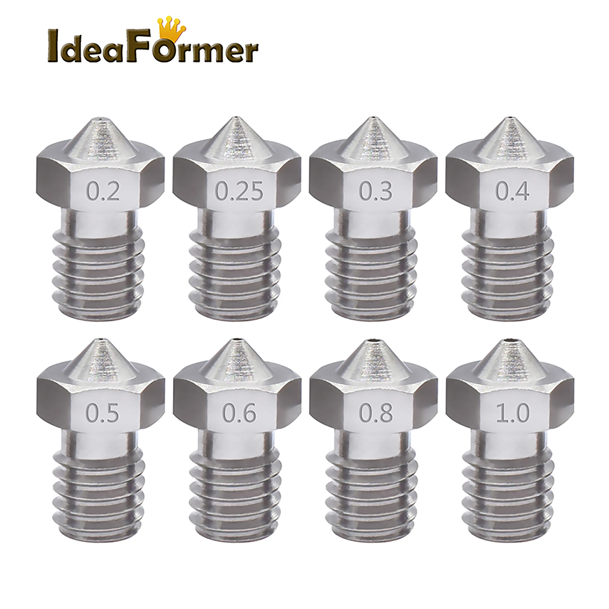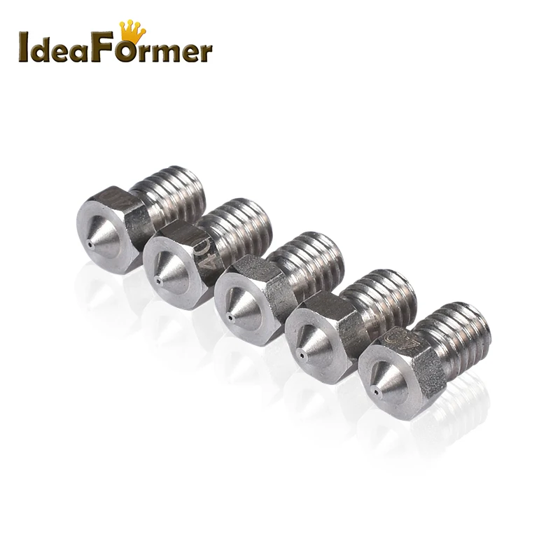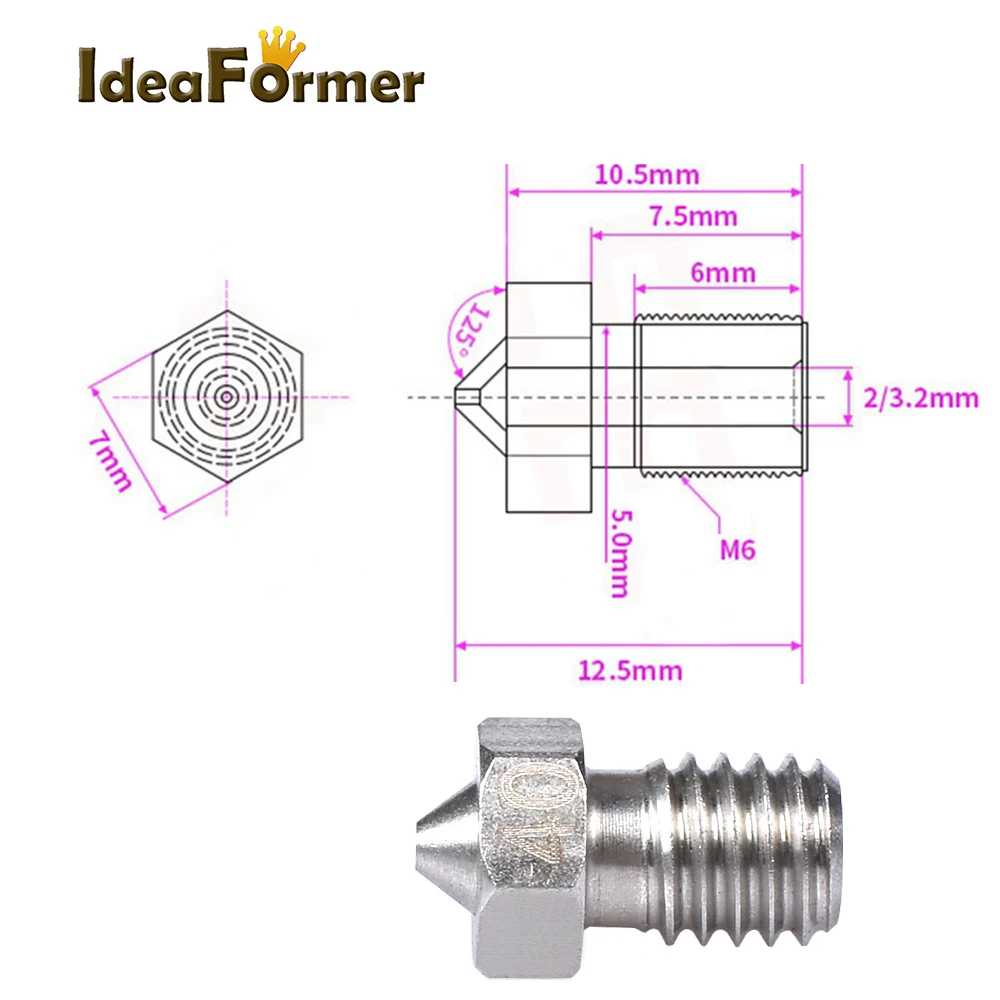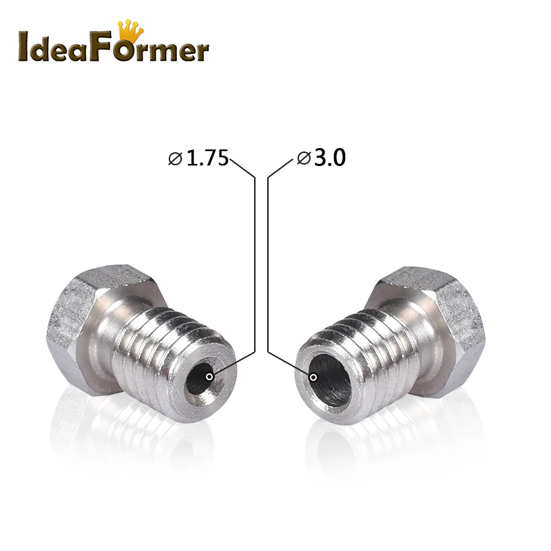 ● Размер насадки: 0,2 мм, 0,25 мм, 0,3 мм, 0,4 мм, 0,5 мм, 0,6 мм, 0,8 мм, 1,0 мм.● Совместимость: 1,75 мм или 3,00 мм fliament.● Материал: нержавеющая сталь.● Резьбовой винт: m6.
